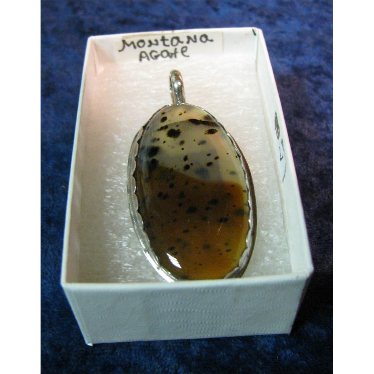 215. Montana Agate Oval in Sterling Silver Mounting. New in box. Reverse signed by maker.