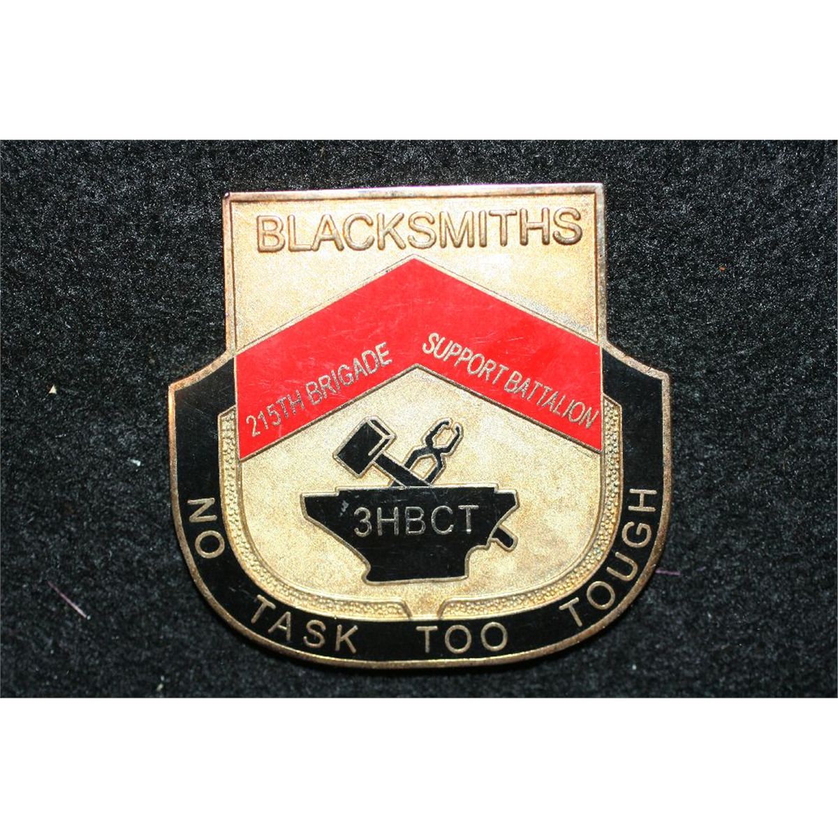 215th Brigade Support Battalion Blacksmiths Challenge Medal, No Task too Tough, Warriors First Logtsticians Always