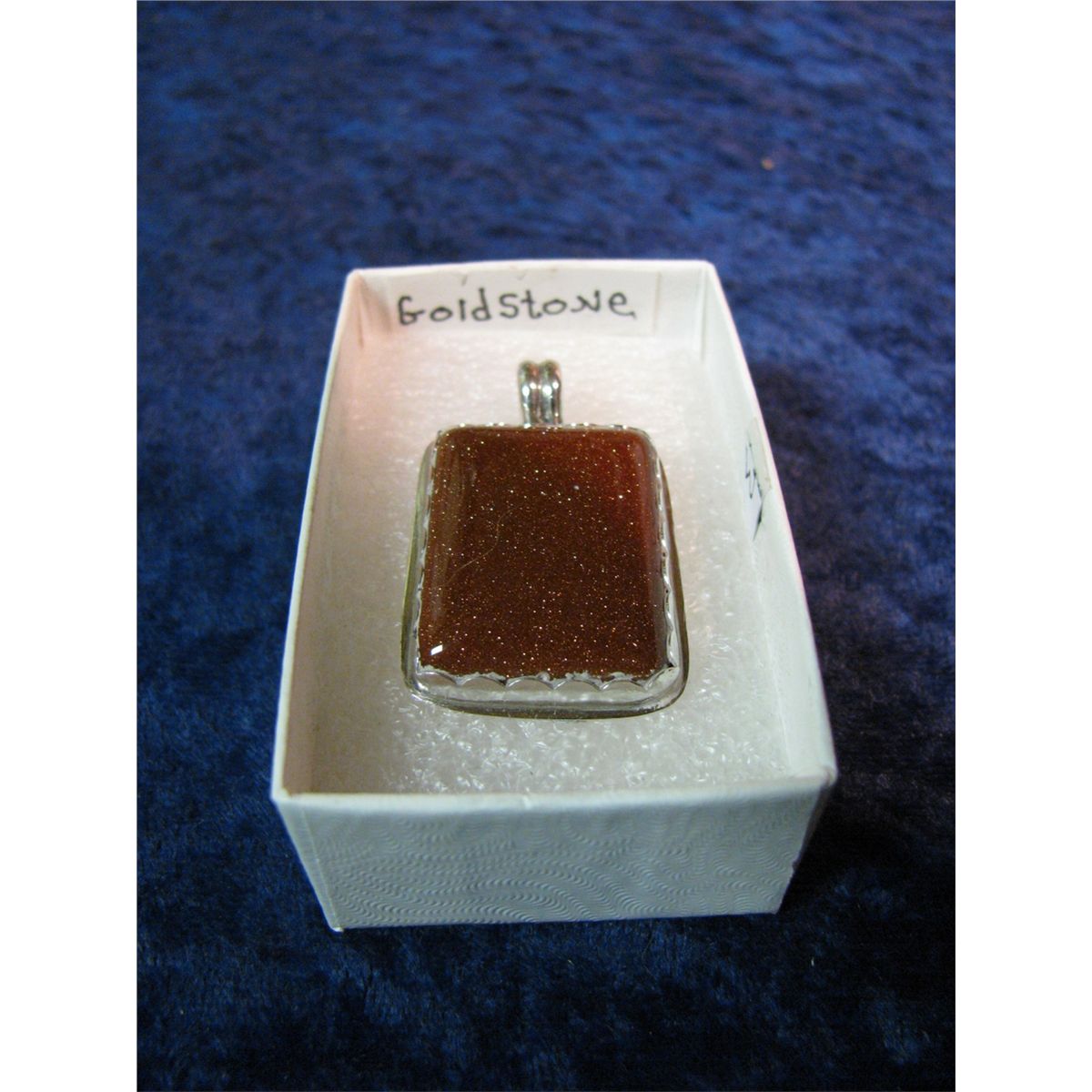 216. Gold Stone Rectangle (Man made stone, made by Monks in Italy) Mounted in Sterling Silver.