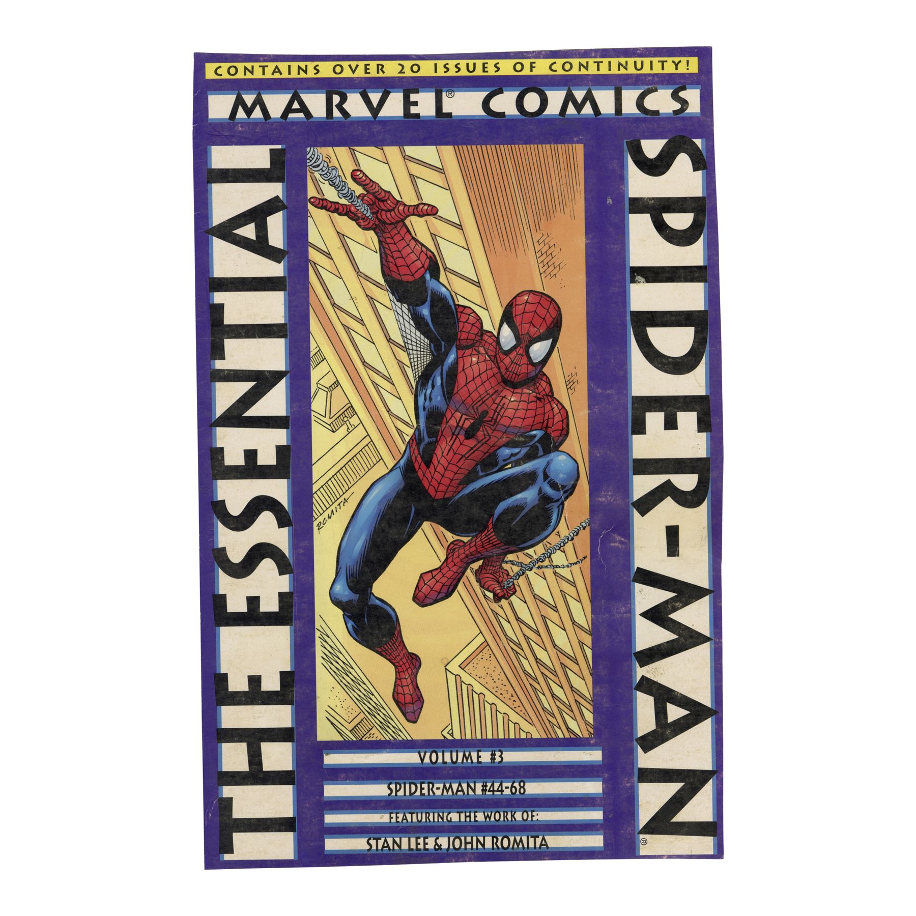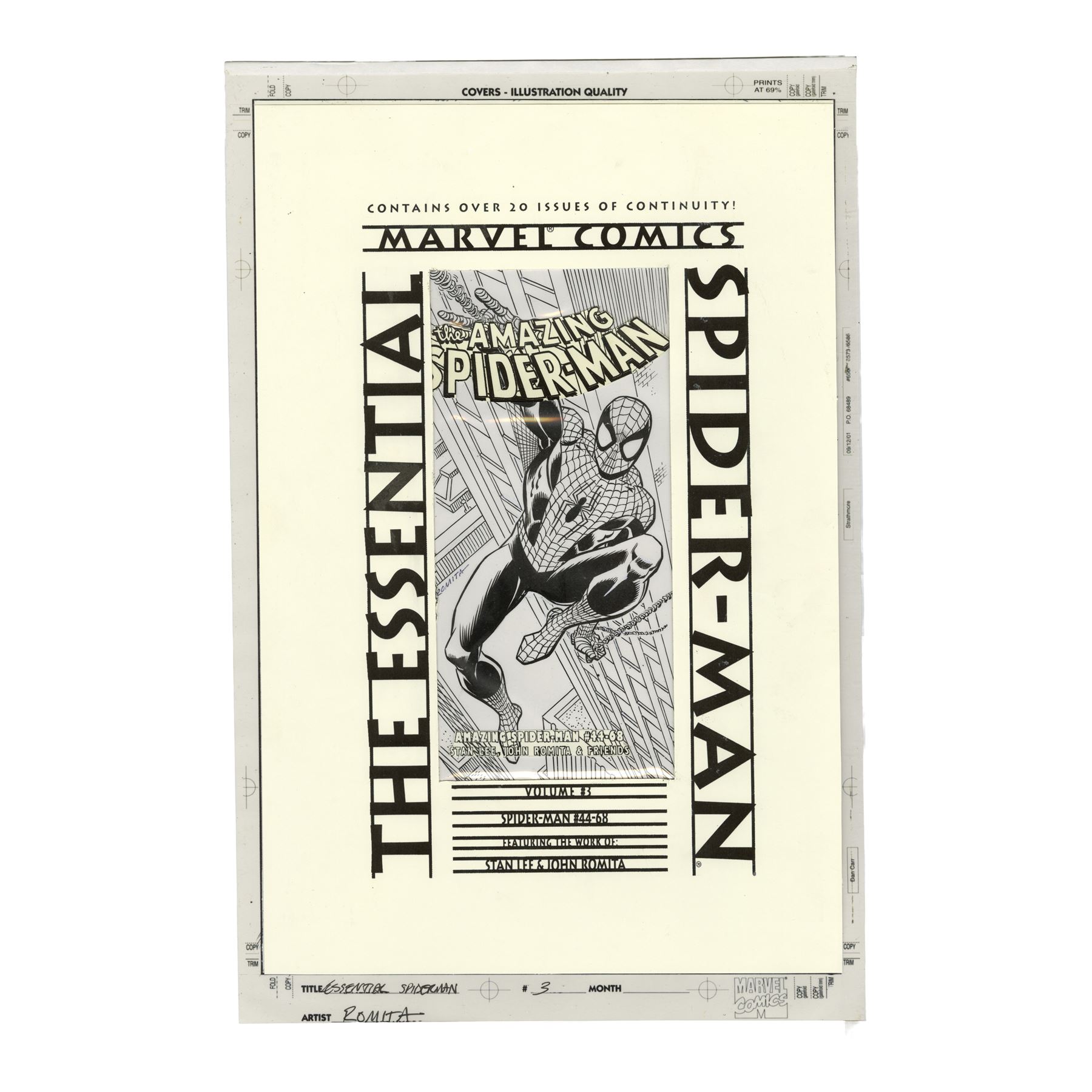 MARVEL COMICS - Hand-Drawn John Romita, Sr. Essential: The Amazing Spider-Man Vol. 3 Cover Illustration - A cover illustration hand-drawn by legendary comic artist John Romita, Sr. for Essential: The Amazing Spider-Man Volume 3, published in June 2002 by Marvel Comics. The volume included Spider-Man issues 44 through 68 with writing by Stan Lee and art by Romita.