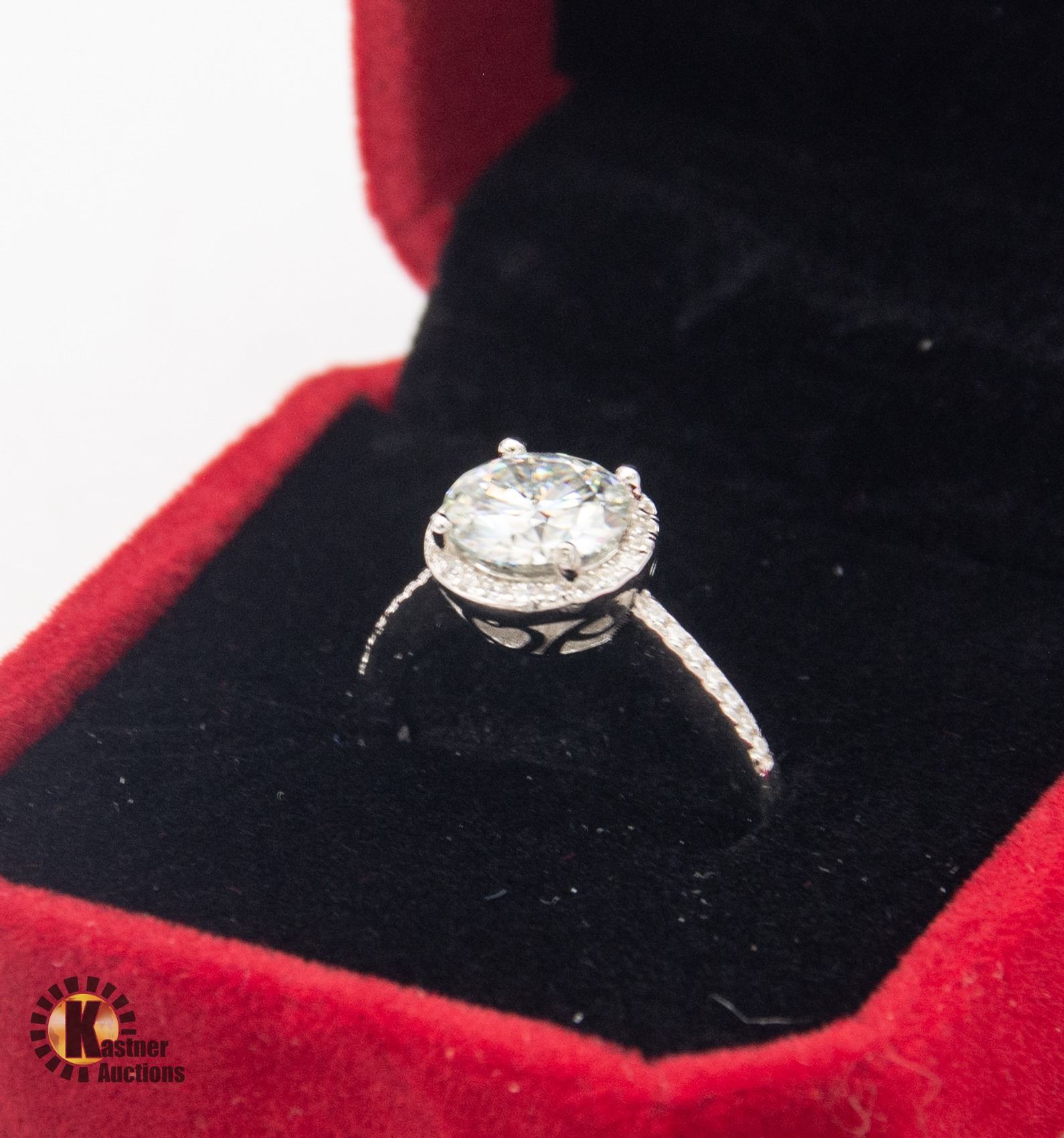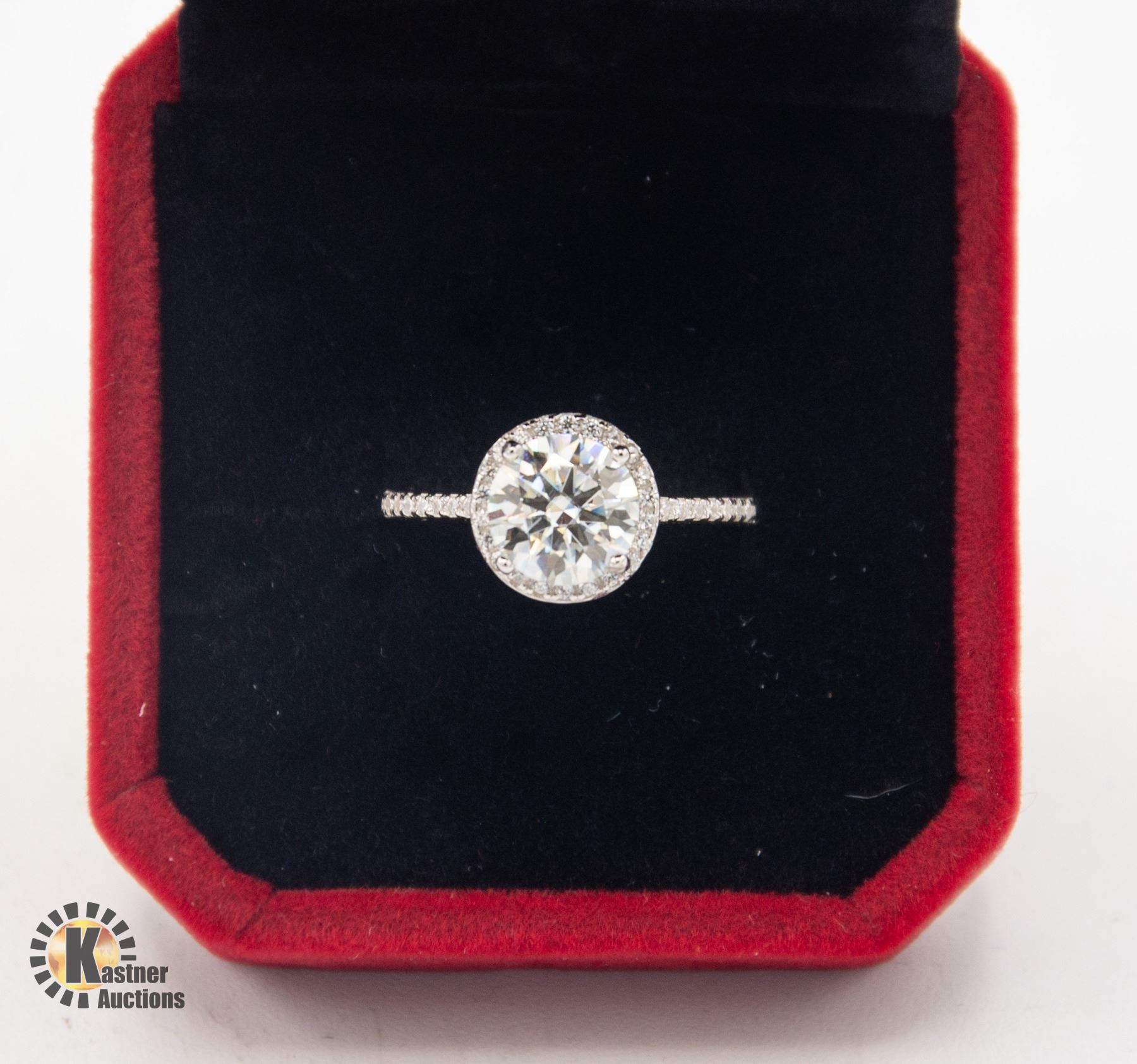 MOISSANITE STONE VVS D COLOR WITH 35 ROUND BRILLIANT CUT CUBIC ZIRCONIA SET IN ROUND HALO AND IN SHOULDERS SET IN 925 SILVER RING SIZE 6.5 RETAIL VALUE $1,050.00 **ALL ITEMS MUST BE REMOVED BY 5PM SATURDAY, FEBRUARY 15TH 2025. ALL REMAINING ITEMS WILL BE SUBJECT TO A $6.00 PER DAY STORAGE CHARGE. ANY ITEMS REMAINING AFTER MONDAY, MARCH 10TH 2025 WILL BE CONSIDERED FORFEITED. NO REFUNDS WILL BE ISSUED FOR FORFEITED ITEMS. TO SCHEDULE A PICK UP APPOINTMENT CLICK HERE
