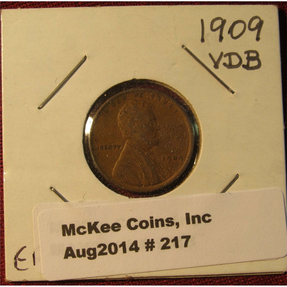 217. 1909 P Vdb Lincoln Cent. EF 40.