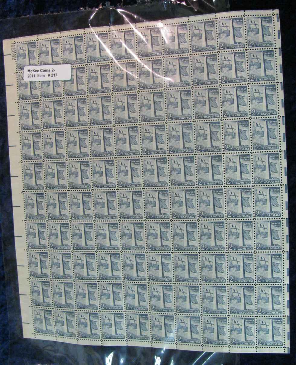217. Original Mint Sheet of Bunker Hill 2 1/2c Stamps. (100 stamps).