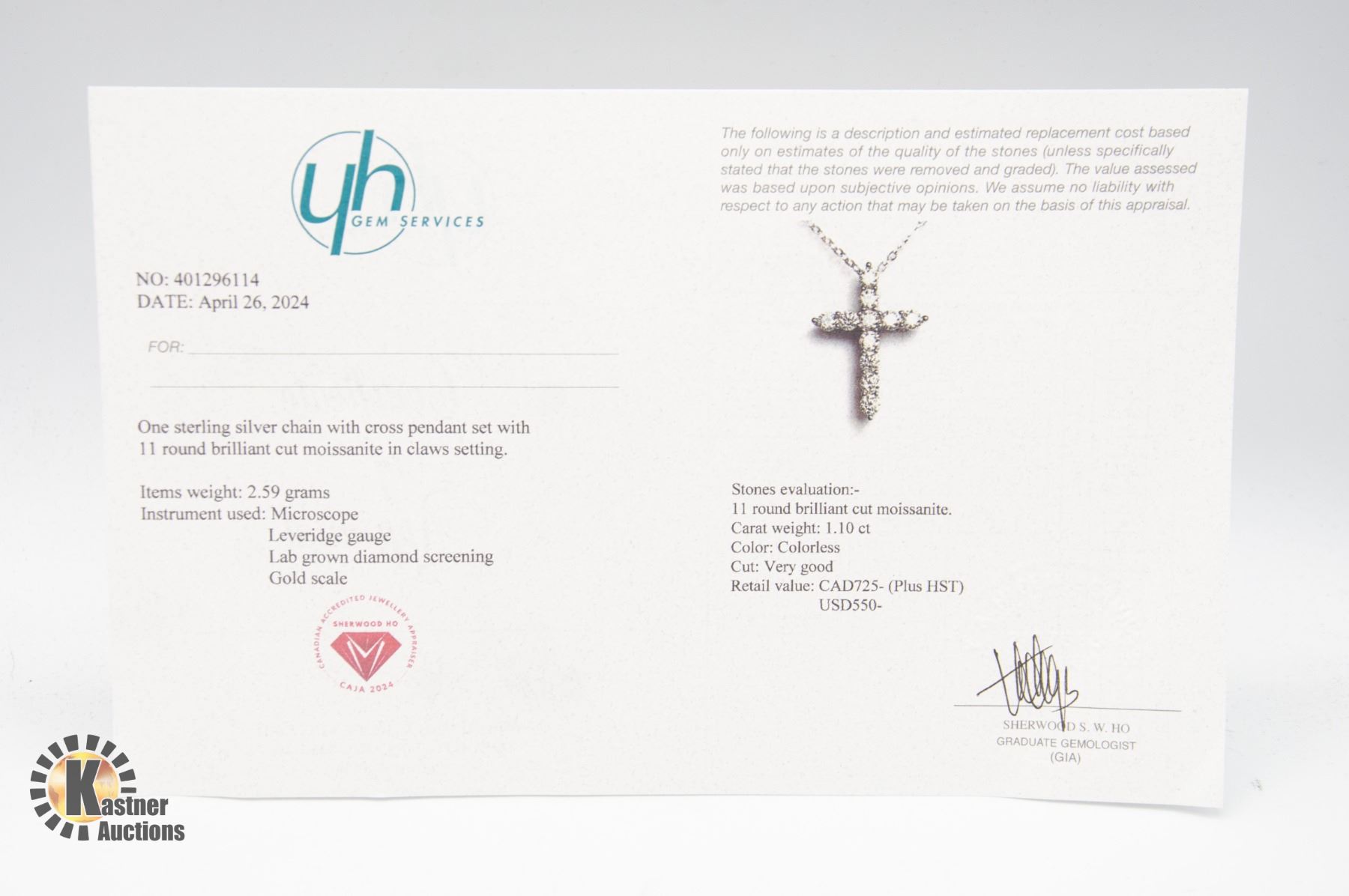 STONES VVS D COLOR WITH THE 11 MOISSANITE STONES SET INTO CROSS SET IN 925 SILVER PENDANT RETAIL VALUE $725.00 **ALL ITEMS MUST BE REMOVED BY 5PM SATURDAY, FEBRUARY 15TH 2025. ALL REMAINING ITEMS WILL BE SUBJECT TO A $6.00 PER DAY STORAGE CHARGE. ANY ITEMS REMAINING AFTER MONDAY, MARCH 10TH 2025 WILL BE CONSIDERED FORFEITED. NO REFUNDS WILL BE ISSUED FOR FORFEITED ITEMS. TO SCHEDULE A PICK UP APPOINTMENT CLICK HERE