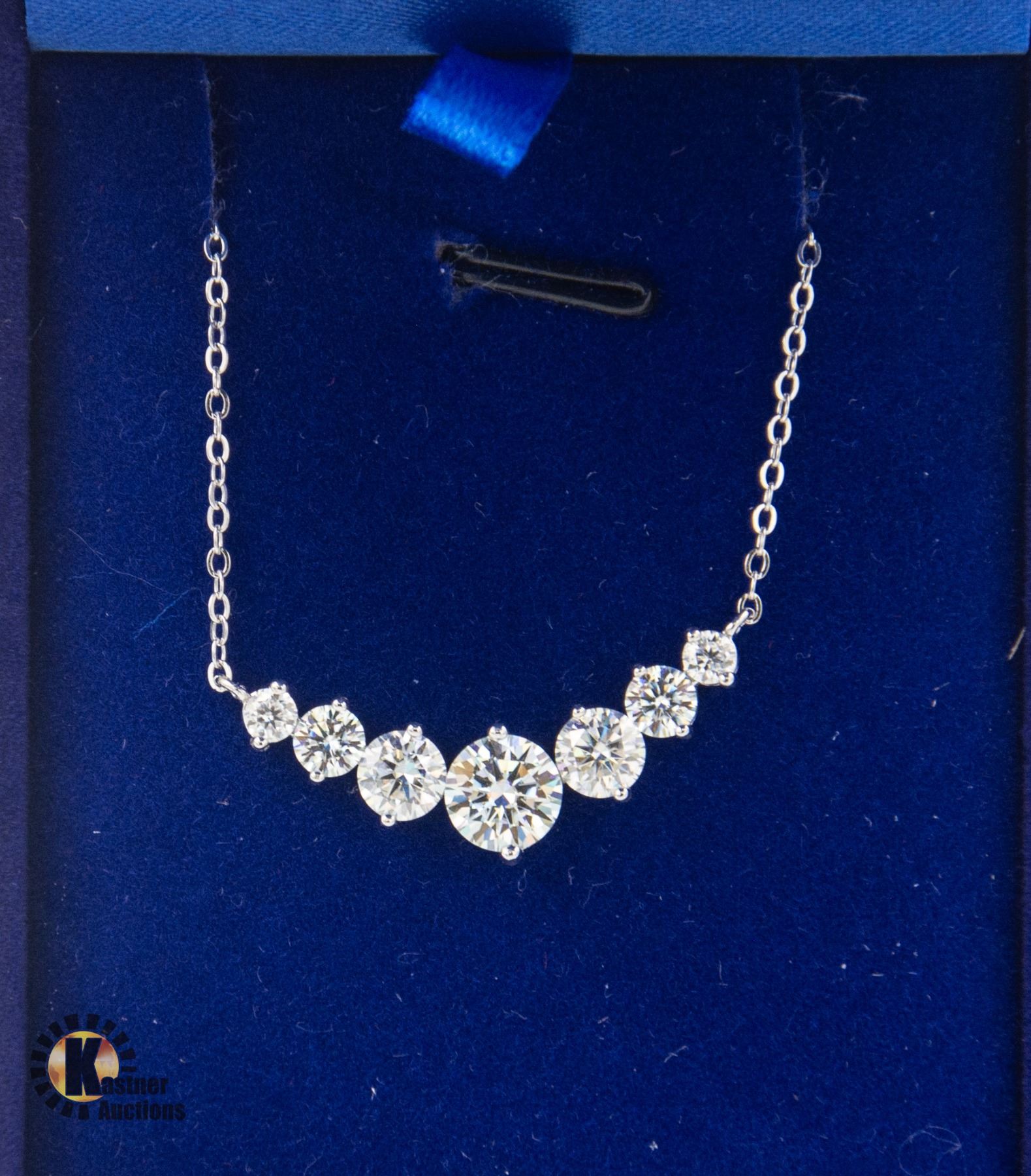 CUT MOISSANITE STONES VVS D COLOR SET WITH LARGEST MOISSANITE SET IN CENTER GRADUATING TO SMALLEST OF 3 PER SIDE SET IN V SHAPED SET IN 925 SILVER PENDANT RETAIL VALUE $975.00 **ALL ITEMS MUST BE REMOVED BY 5PM SATURDAY, FEBRUARY 15TH 2025. ALL REMAINING ITEMS WILL BE SUBJECT TO A $6.00 PER DAY STORAGE CHARGE. ANY ITEMS REMAINING AFTER MONDAY, MARCH 10TH 2025 WILL BE CONSIDERED FORFEITED. NO REFUNDS WILL BE ISSUED FOR FORFEITED ITEMS. TO SCHEDULE A PICK UP APPOINTMENT CLICK HERE