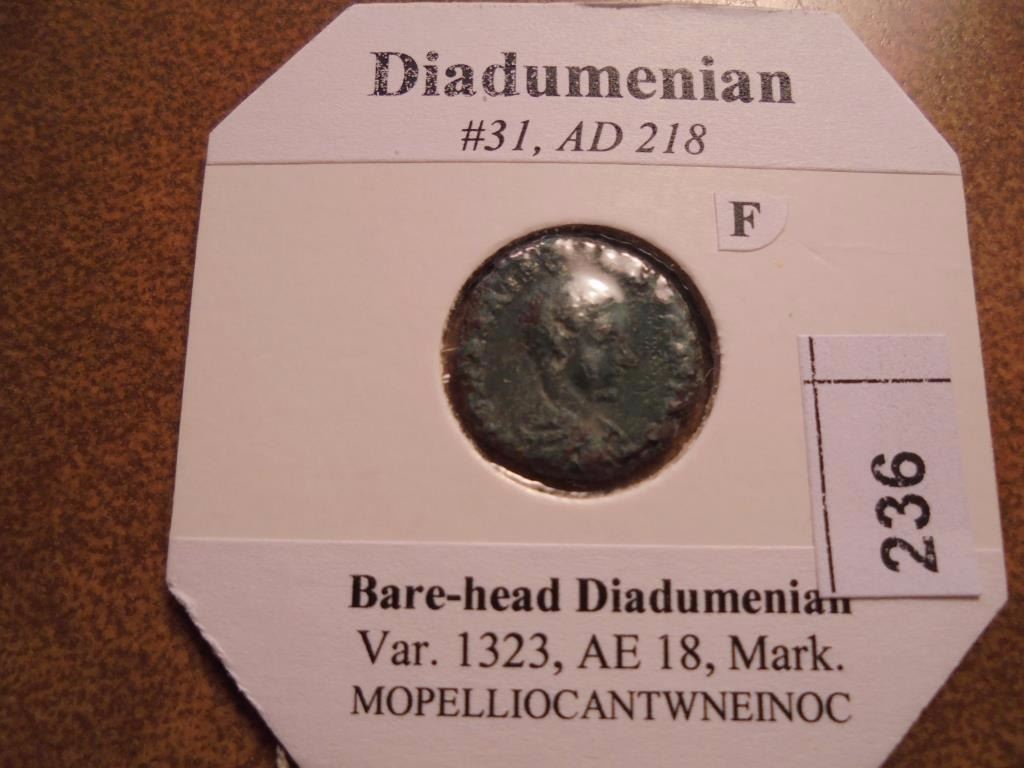 218 A.D. DIADUMENIAN ANCIENT COIN (FINE)