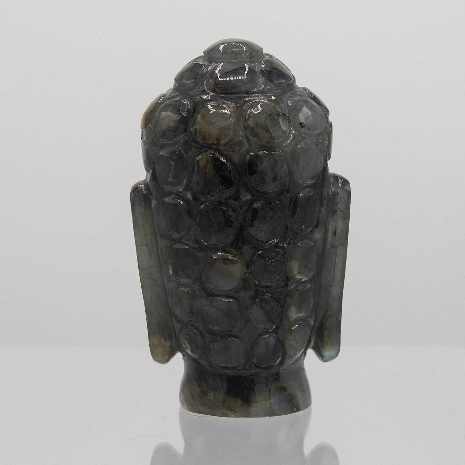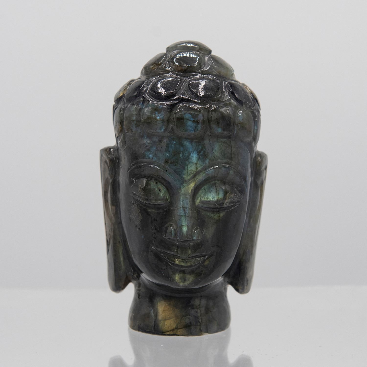 Gorgeous Huge Museum Size 2180 CT. Certified Hand Carved Labradorite Buddha. This labradorite buddha bust displays a multitude of different colors with a very luminescent opal like finish. It has a fine polish and vivid luster measuring 97 x 58 x 53 mm. Pictures cannot begin to unveil the beauty of this gem carving.