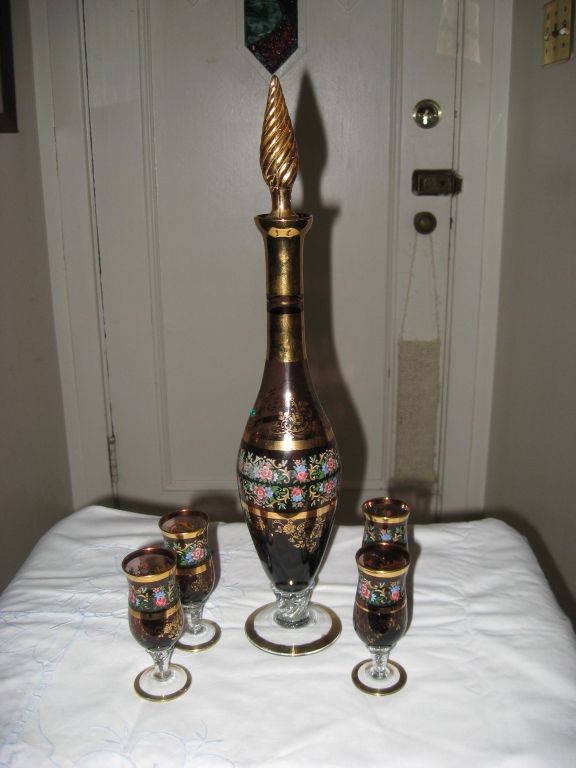 2189 - Ventian enamelled with gilf decanter with 4 gobletsgoblets