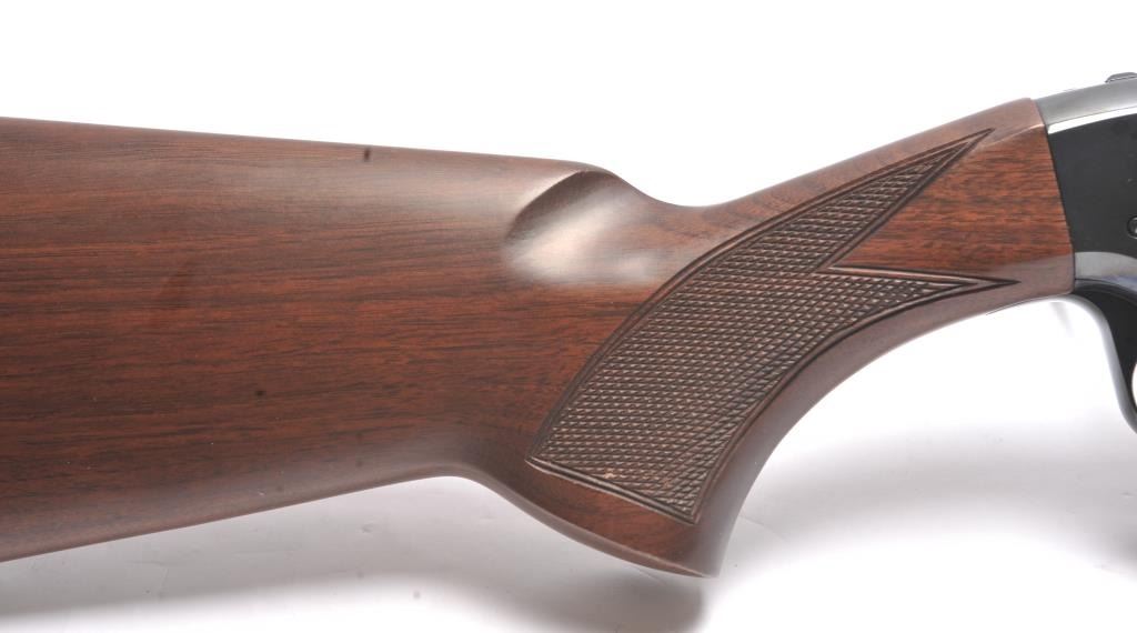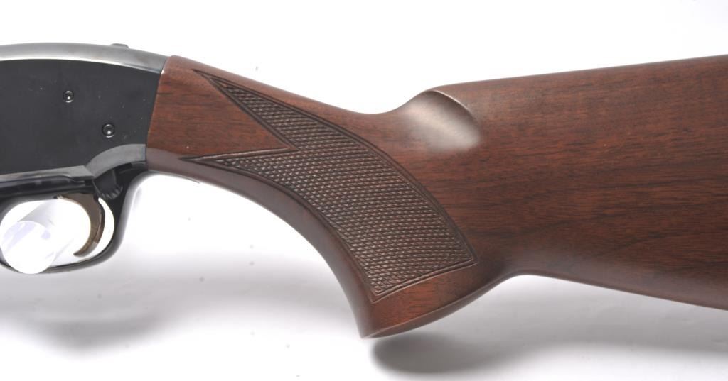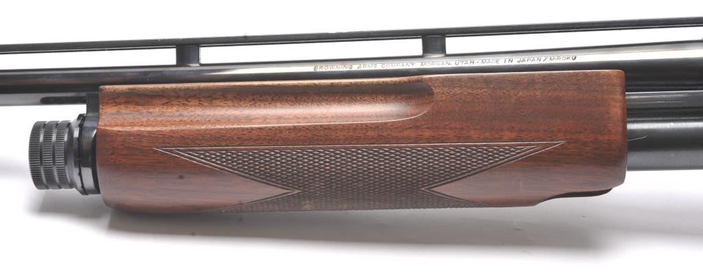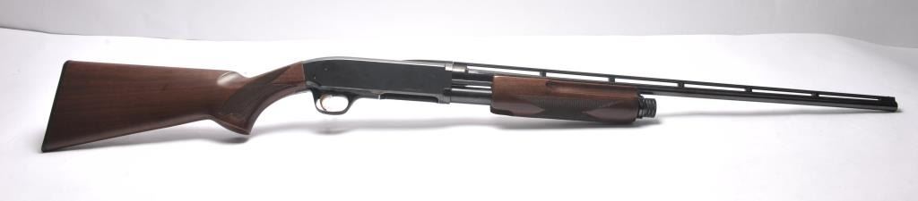 Browning Field Model BPS Invector pump shotgun, .410 gauge, Serial #17360MZ121. The shotgun is in near excellent condition with a 26” barrel with a full-length rib. The shotgun retains approximately 98-99% of theblue finish with light handling marks. The finely checkered Walnut stock is in very good condition with small mars and scratches. The butt stock ends with a Browning marked plastic butt plate providing a 14 ¼” LOP.The bore is good, the action is crisp and the markings are sharp on this desirable Browning. Est.: $800-$1,600. (Modern/PPT).