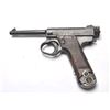 Japanese Nambu Type 14 semi-automatic pistol, 8mm caliber, Serial #2291. The pistol is in good overall condition. The metal surfaces are a mixture of military finish drifting to patina with areas of light surface erosion.The slide is Nagoya Arsenal marked, with the frame dated 16.11. The wood grips are in good condition with dents and mars consistent with carry and use. The bore is good and the action is crisp on this WWII era Type 14with one correct non-matching magazine. Est.: $300-$600. (C+R).