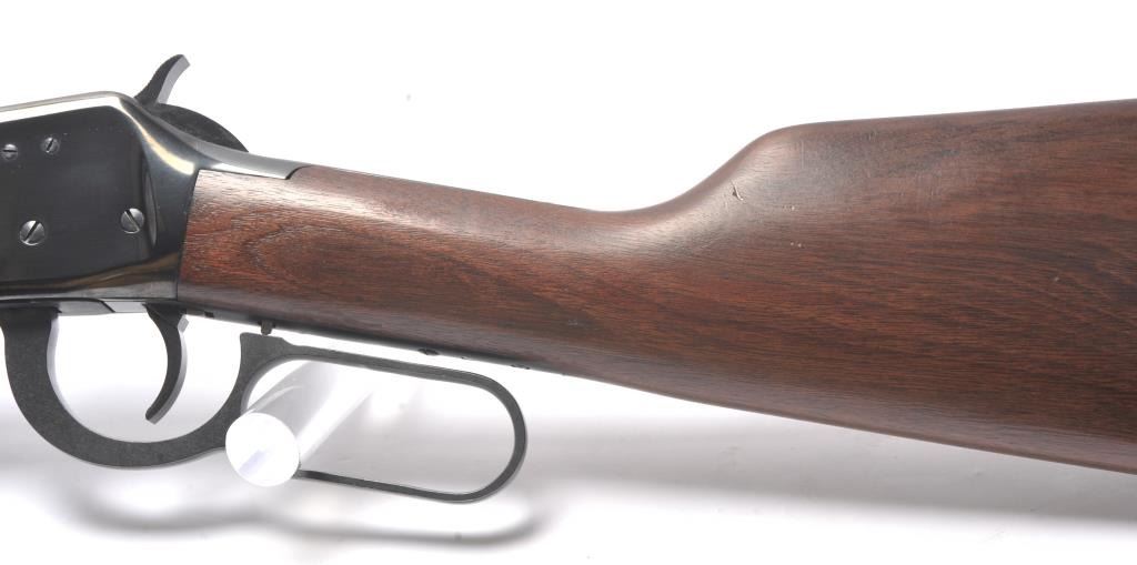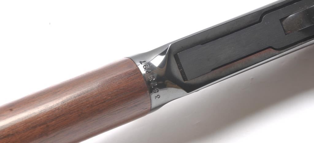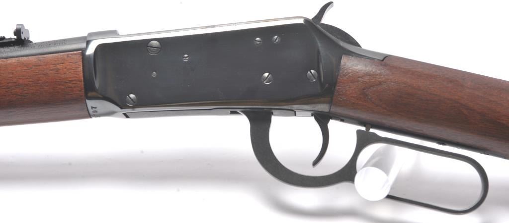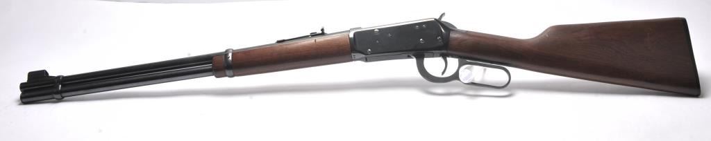 Winchester Model 1894 lever action carbine, .30-30 Winchester caliber, Serial #3573797. The carbine is in very good overall condition with a 20” barrel with a hooded ramped front and standard rear sights. The carbineretains the majority of the blue finish with some loss of finish on the barrel and small scratches. The smooth wood stock is in very good condition with small mars and compressions. The bore is good, the markings are sharp and the action is crisp. Est.: $350-$700. (Modern/PPT).