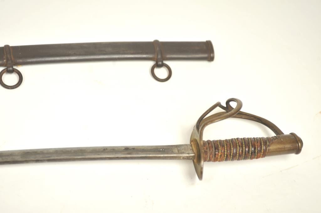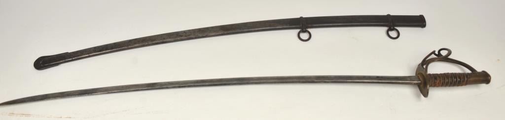 U.S. Model 1860 Cavalry Saber by “C. Roby” with scabbard dated “1864” with “U.S.” and “AGM” inspections. Exceptionally well stamped and in very good overall condition with pleasing patina and tight wrap with somescuffs and loss to leather. Est.: $300-$600