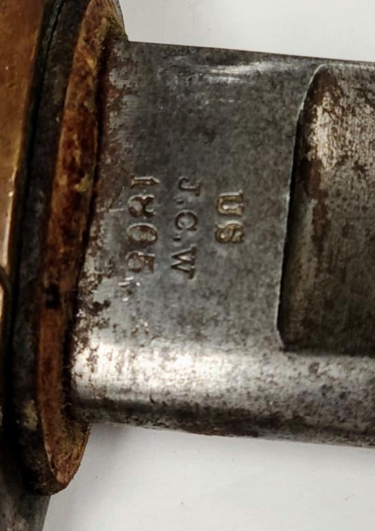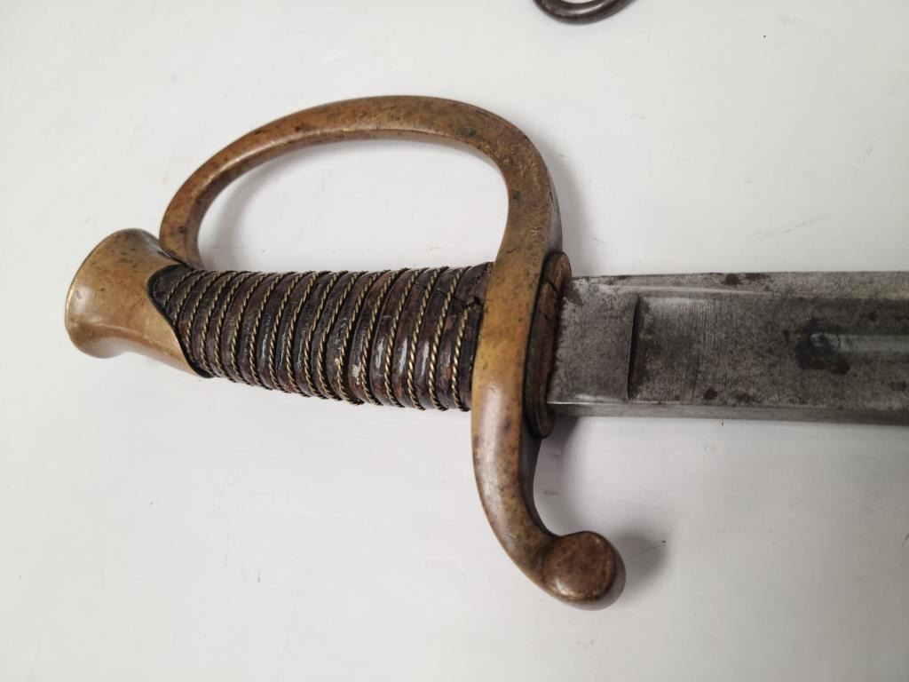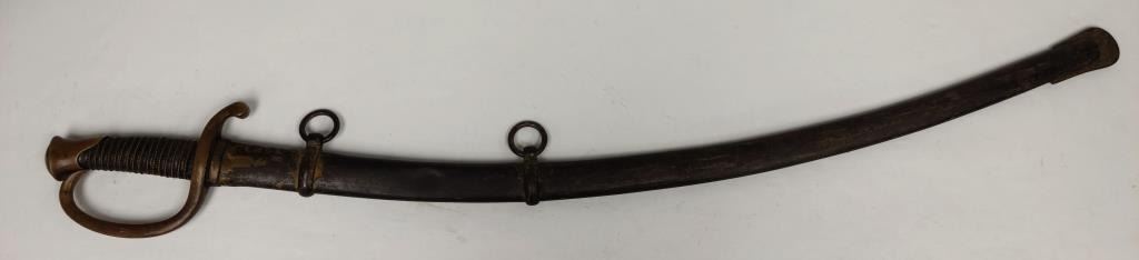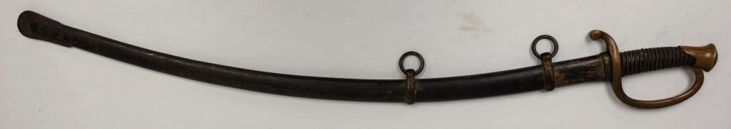 U.S. Model 1840 Artillery Sword dated 1865 with “U.S.” and “J.C.W.” inspection, with Ames makers mark on reverse. Good wire over leather grip and shows deep patina and aging. The blade shows minor erosion but overall,very good plus. Est.: $400-$800