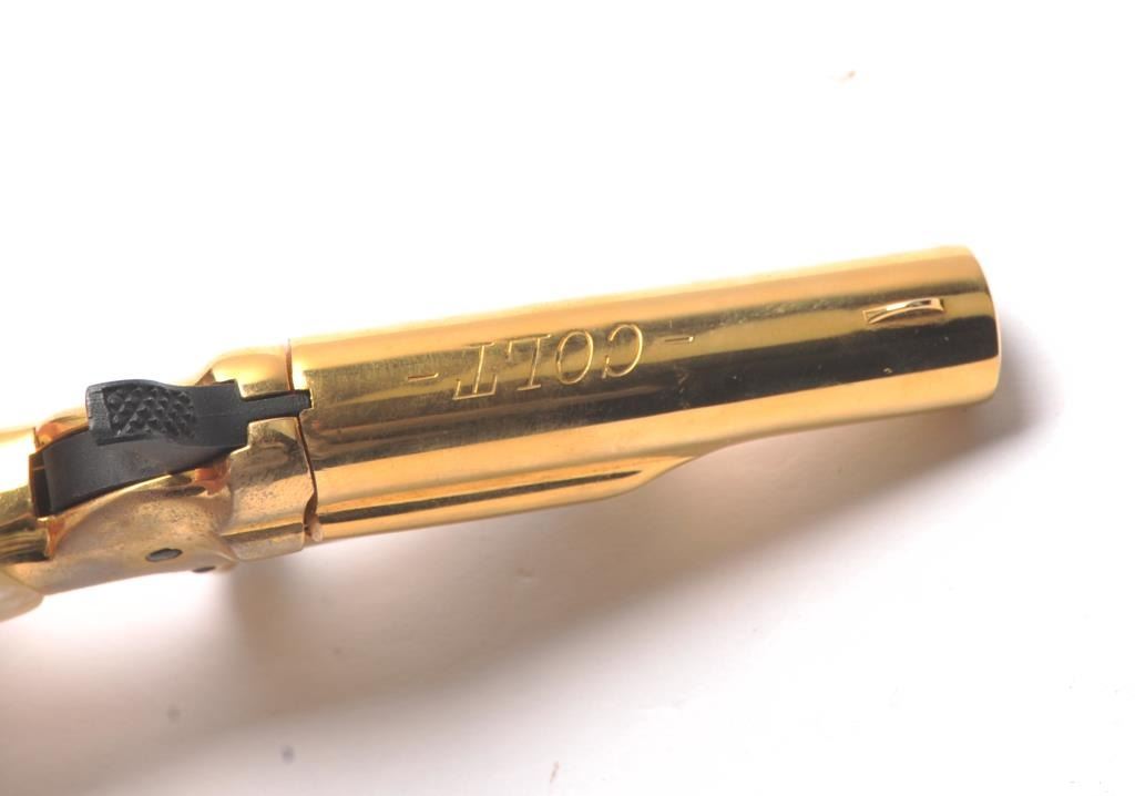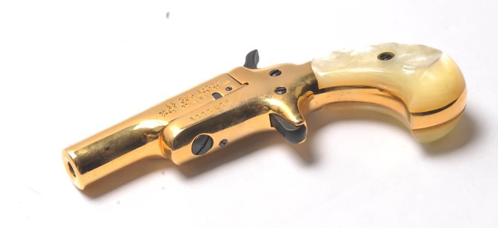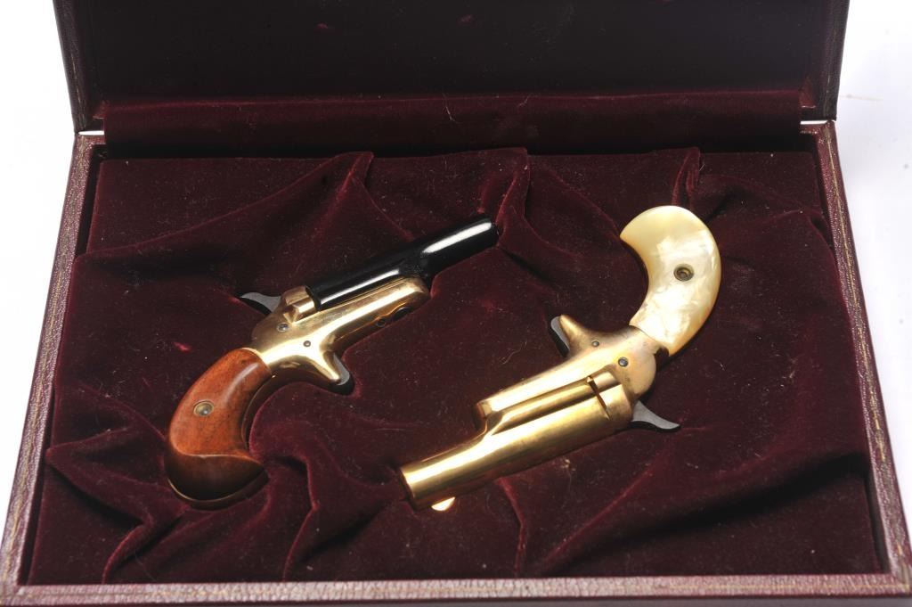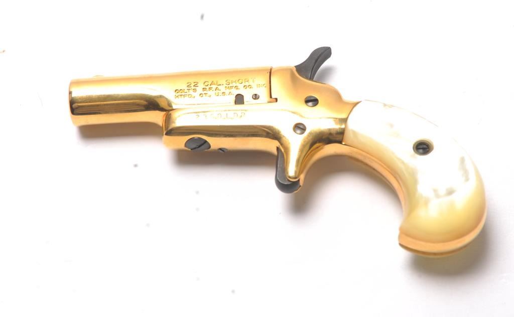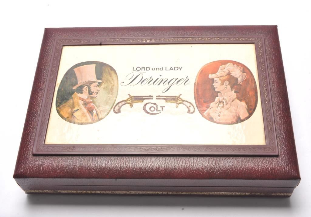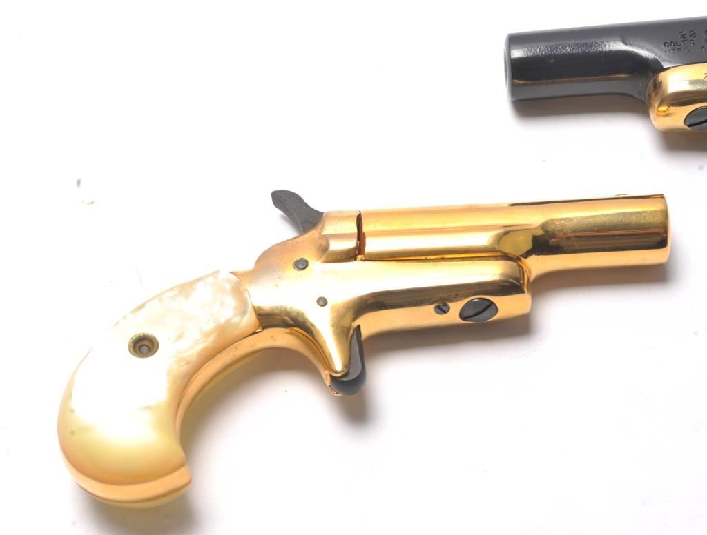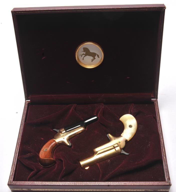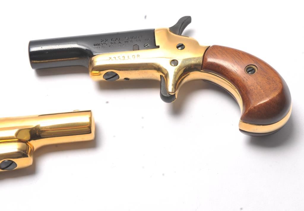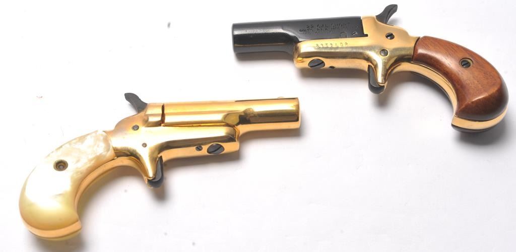 Pair of Colt Derringers in Lord and Lady Series in .22 Caliber short, S/N 2360LDR & 2359LDR. 1 full gold and 1 blue and gold. Slightly toned but show no use just storage and handling. (Modern/PPT) Est.: $250-$500
