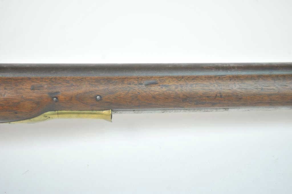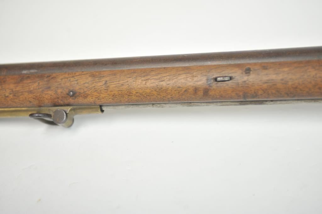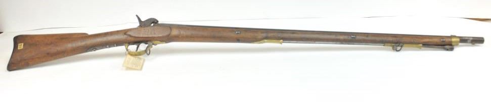 Saxson “Cyclops” musket .70 caliber rifle with barrel signed in script on the tang “Krause in Herzburg” tag refers to U.S. Cartridge Co. catalog #218 case 13. The stock shows carved upside down “J R” initialsbeneath the breech on the right side. Measures 55 ½” overall with a 39” barrel. The trigger guard is stamped “2 BIC 100” with other numbers and foreign stamps. Correct style Saxson ramrod retained. #30 tag instock (Last sold Fred Slayton’s confederate arms collection by little Johns 1990s). Brown patina on barrel with light to moderate scattered pitting and erosion mostly on the breech, hammer and firing areas. The stock is good with light steel wool type cleaning but no sanding. Bands retained. This type secondary European arm was bought up in Europe by confederate agents and run in through the blockades. (Antique) Est.:$1400-$2800