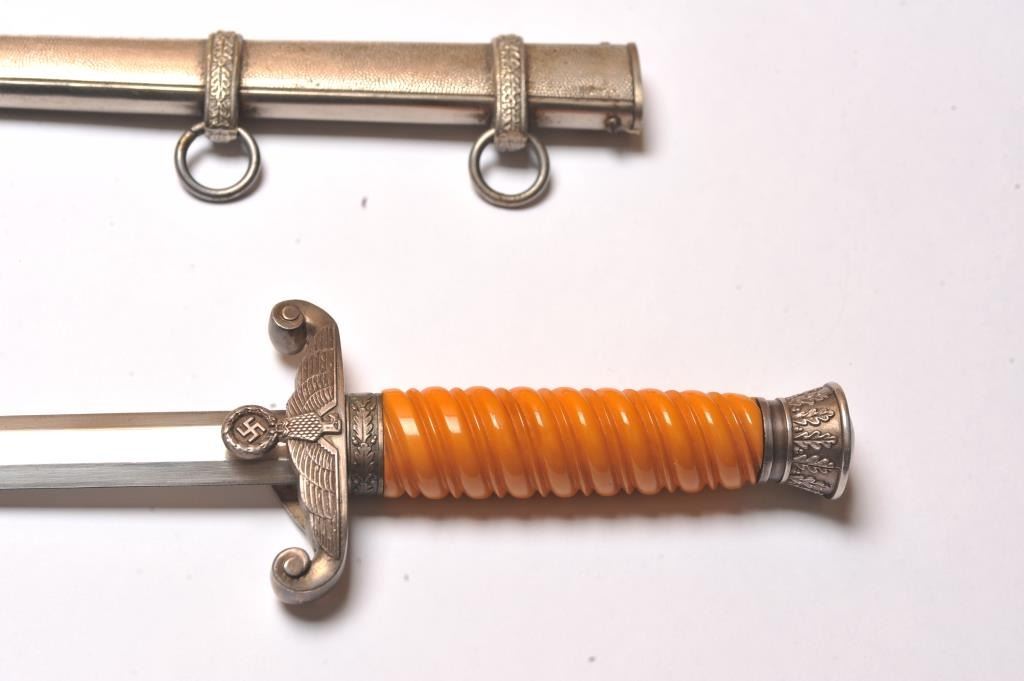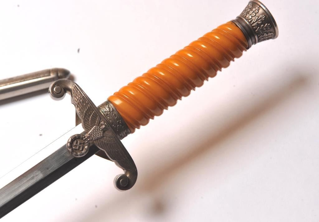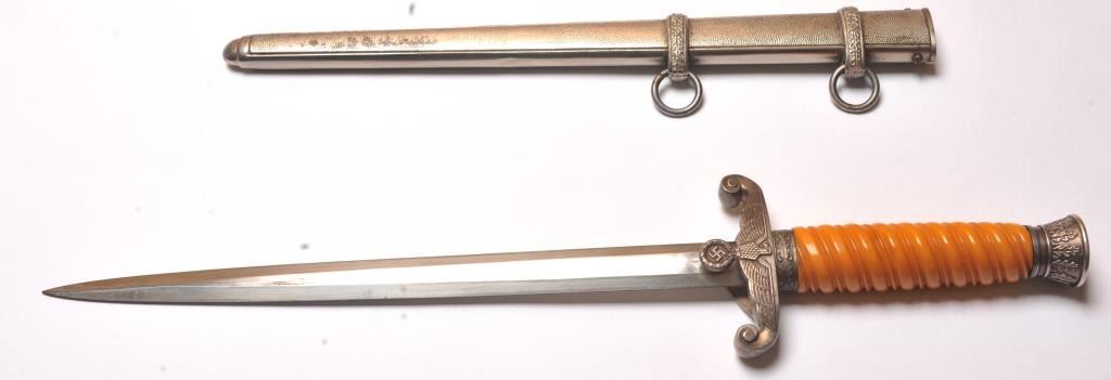 Wehrmacht (Army Dagger) in very good original condition with “Puma” marked blade. 8+ on a 1-10 scale. Minor normal aging. Est.: $300-$600