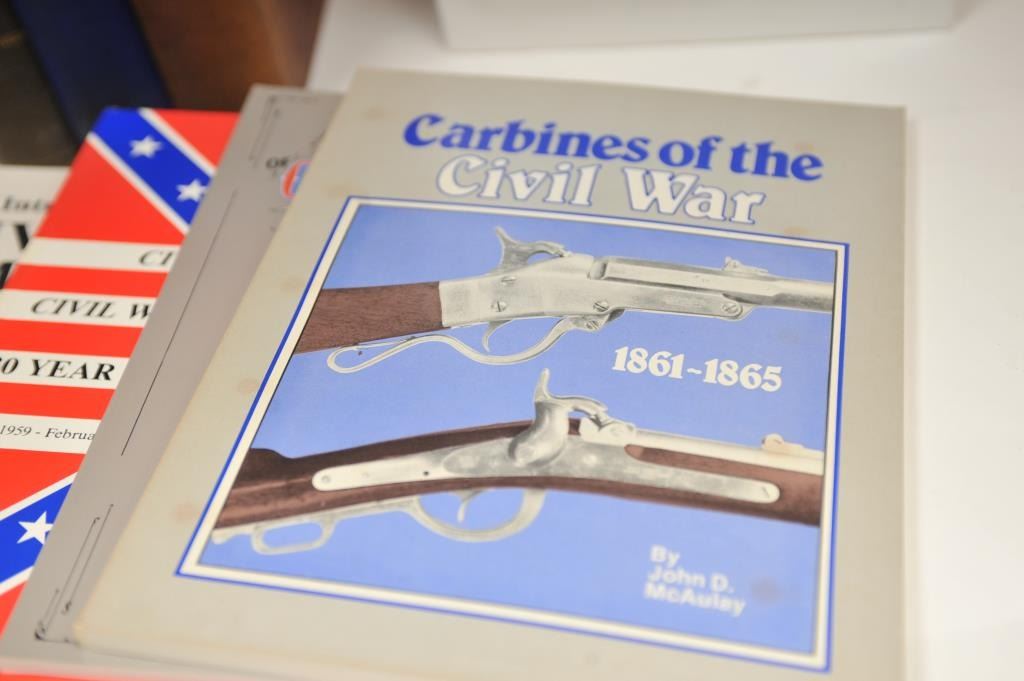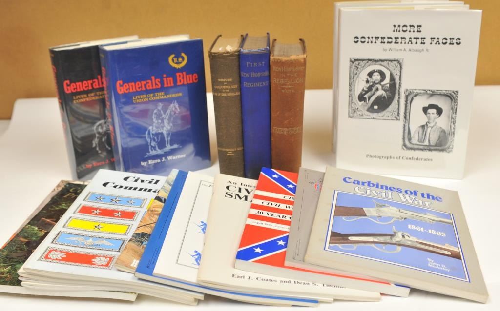 Bonanza lot of 7 hardback and 12 soft cover books on the Civil War, officers, units, artifacts, etc. Great reference materials for the Civil War collector of firearms, photos, relics, etc. Est.: $150-$300.