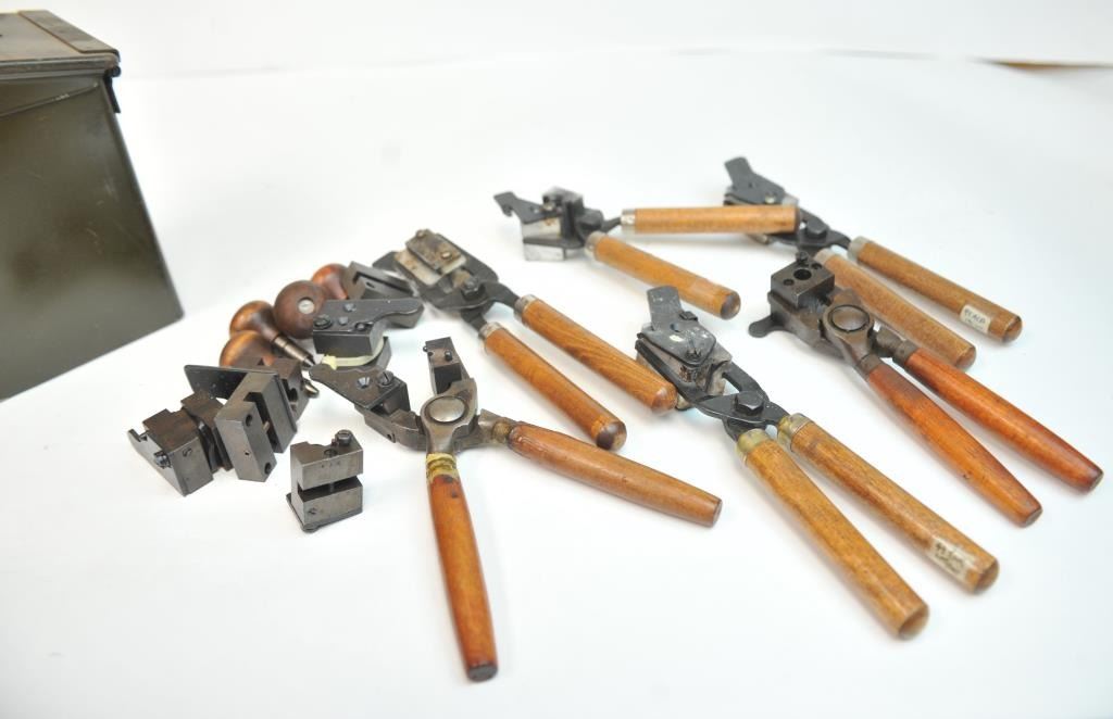 Lot of six bullet molds marked, Ideal Mfg., Lee and Lyman in an assortment of calibers including; .32-40, .38. .45 Govt., .476 and .577 among others. The molds are all in good to very good condition. $150-$300.