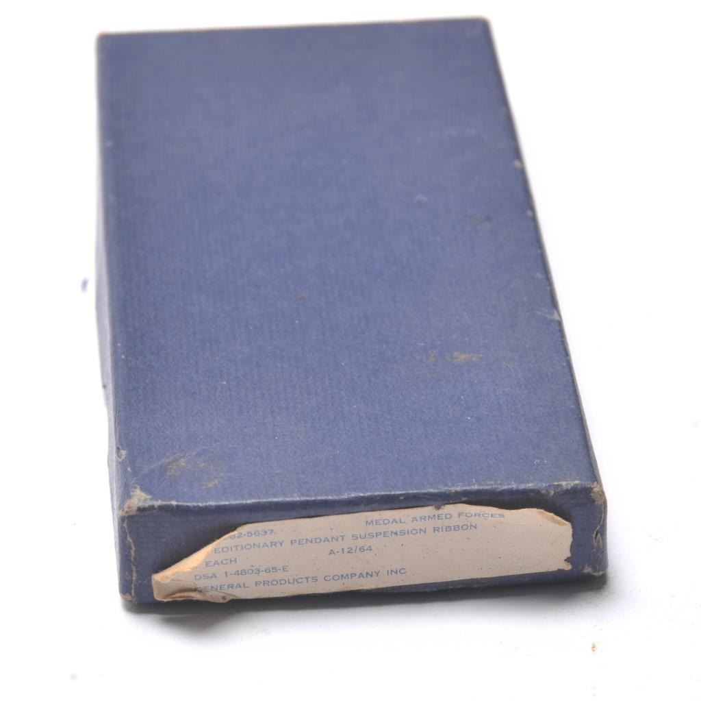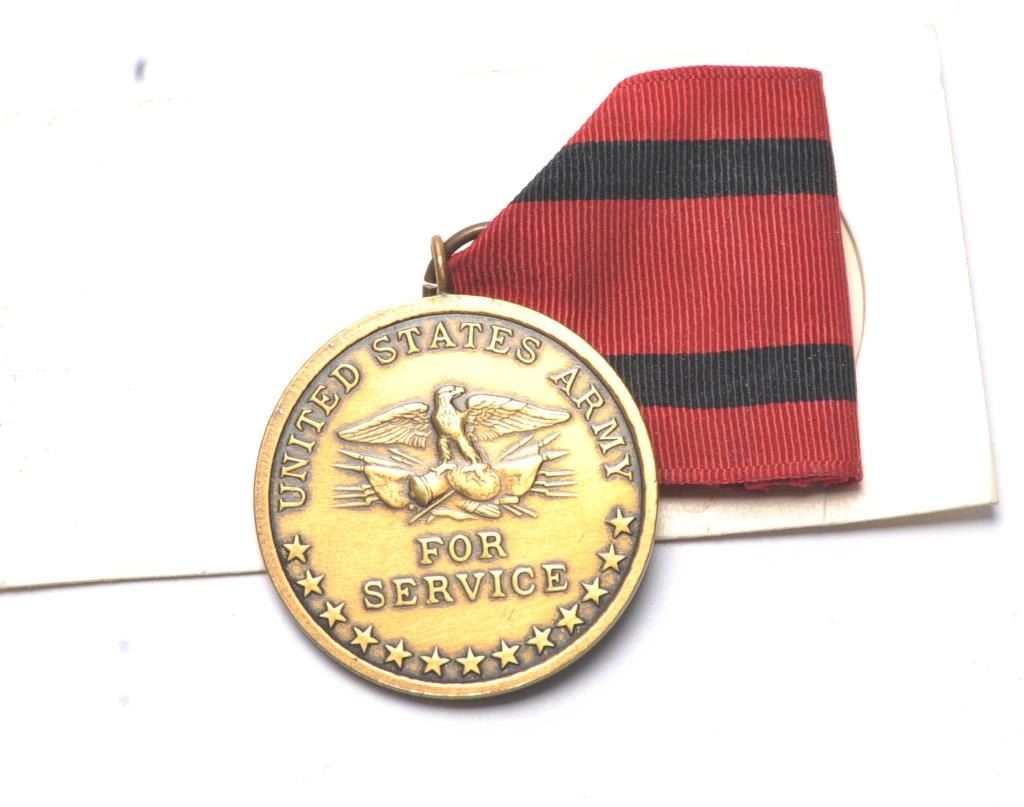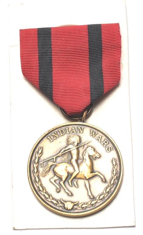Indian Wars Service medal in the original box. The medal is in fine to nearly excellent overall condition with its red and black ribbon, marked, “INDIAN WARS” on the front and “UNITED STATES ARMY FOR SERVICE” on the reverse. Est.: $150-$300.