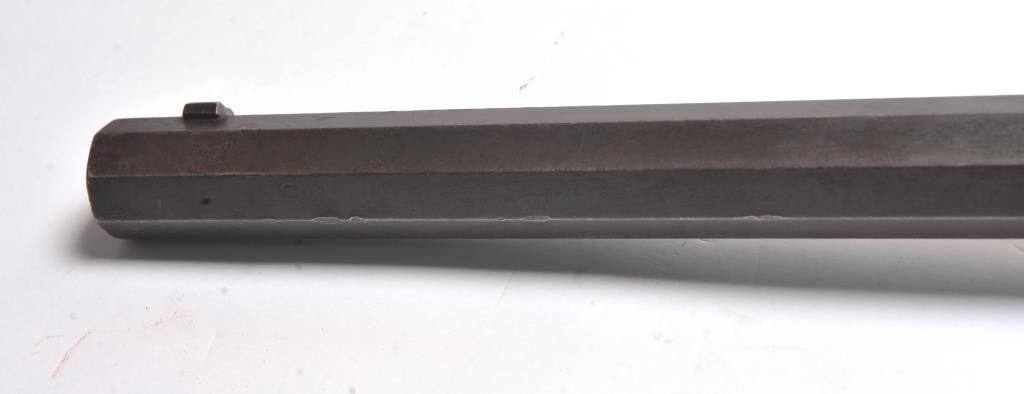 Sharps Model 1874 single shot sporting rifle, .45-70 caliber, Serial #161031. This sporting rifle weighs 12 pounds 14 ounces with a 30” octagon barrel with Cooper Western blade front and ladder rear sights with the Walter Cooper Western buckhorn addition. The barrel has gone to brown patina with dents and mars associated with field use. The barrel address and “OLD RELIABLE” marks are sharp and legible. The receiver is a mottled, silvered case hardening with double set triggers and a Sharps marked period tang sight. The smooth wood stock shows heavy use with losses on both sides of the fore end and at the left side of the wrist. The butt stock ends with a textured steel shotgun butt plate. The lot includes a Sharp’s factory letter confirming the rifle’s features and indicates the gun was invoiced at the Bridgeport factory on September 24, 1878 to James G. Dow, Bozeman, Montana Territory. The rifle was part of a huge shipment of 225 guns in all. The shipment is believed to have been for a straw buyer for Walter Cooper, also of Bozeman, Montana, who was then in bankruptcy. A nice, honest Sharps with great Montana history. Est.: $7,000-$14,000. (Antique).