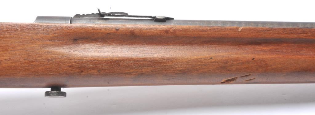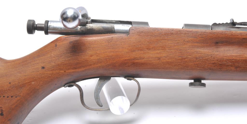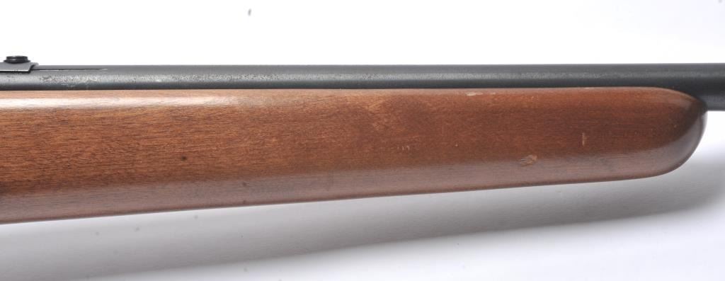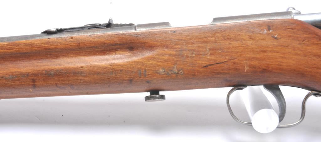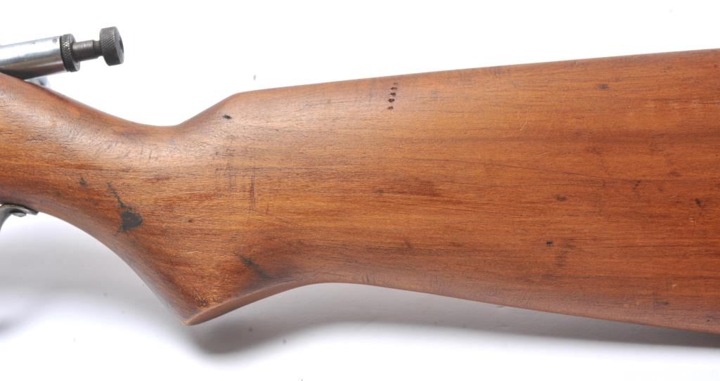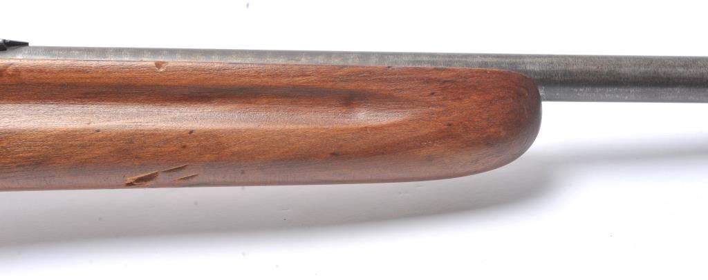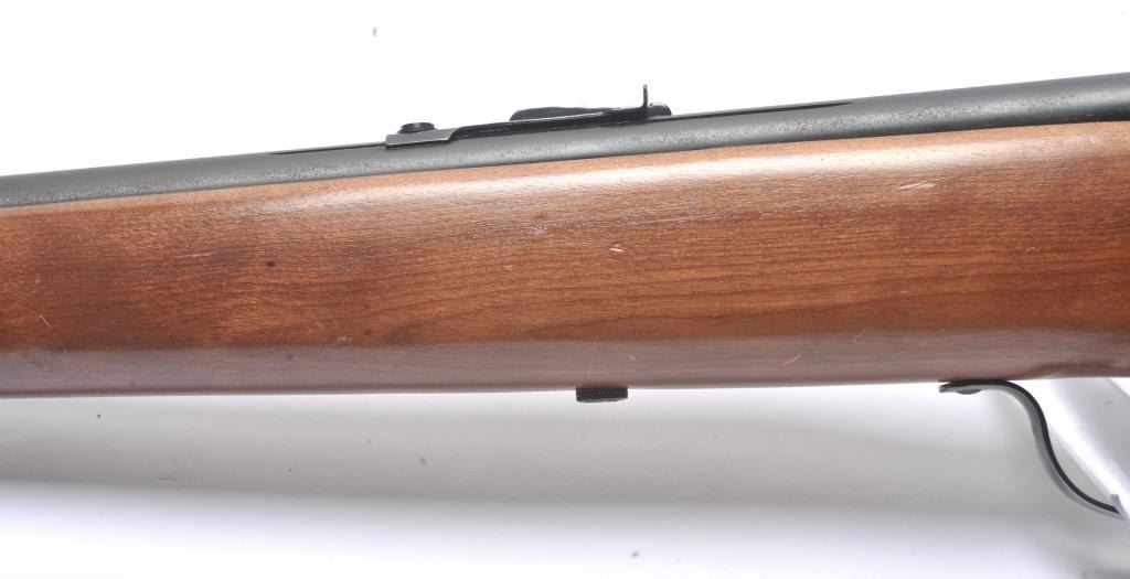 Lot of two bolt action .22 rifles. The lot includes a Wards Western Field Model 32-A bolt action rifle, .22 S., L., or LR caliber, Serial #NSNV. The rifle is in fair overall condition with a 24” barrel. The metalsurfaces are a grey patina with light surface rust. The wood is good, the action functions and the bore is fair. The 2nd rifle is a Springfield Model 120A single shot bolt action rifle, .22 S.,L., or LR caliber, Serial #NSNV. The rifle is in good overall condition with a 24” barrel. The metal surfaces retain the majority of the blue finish with some scattered freckling of surface rust. The bore is good, wood is very good and the action functions. Est.: $125-$250. (C+R/PPT).