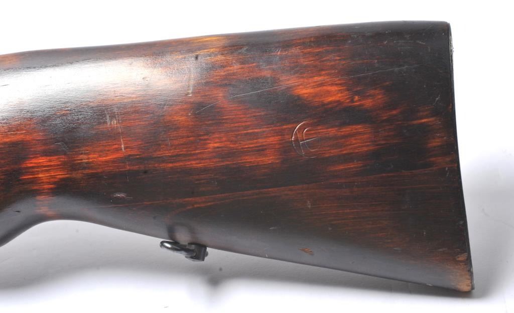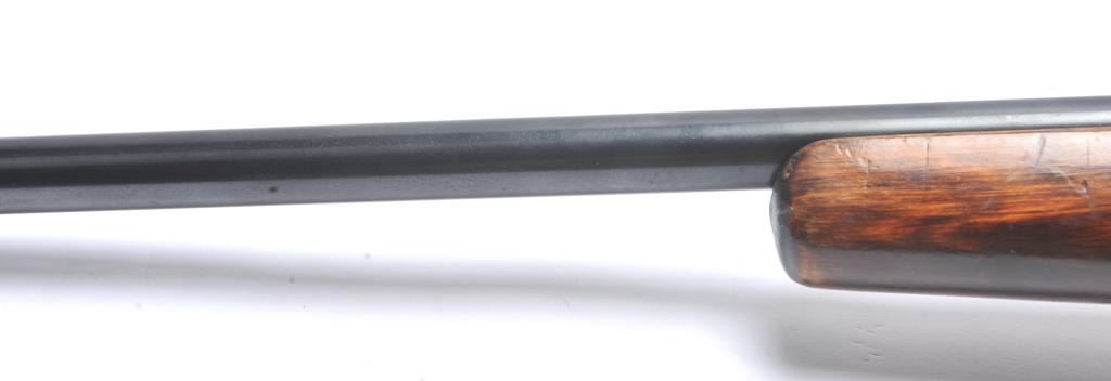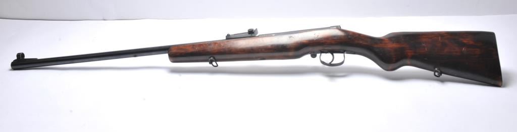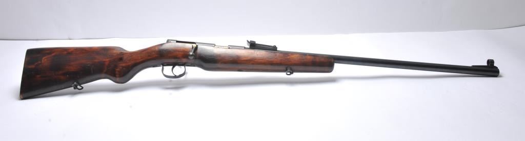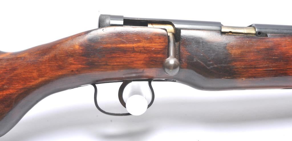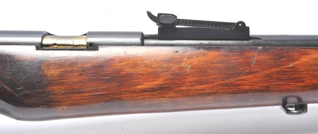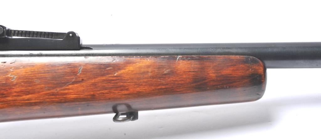 Scarce Russian 1950 Tula manufactured bolt action single shot target rifle, .22 caliber, Serial #6645. The rifle is in overall very good condition with a 24” heavy barrel with a hooded front and military tangent style rear sights. The barrel and action retain nearly all of their blued finish with only light surface freckling visible. The smooth wood laminate stock is in very good condition with small mars and scratches consistent withuse. The rifle has sling swivels and a smooth metal butt plate as well. The bore is very good, action crisp and markings sharp on this rifle. Est.: $200-$400. (C+R/PPT).