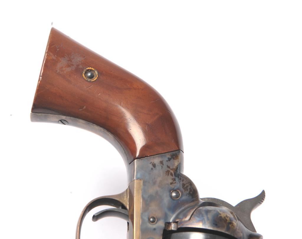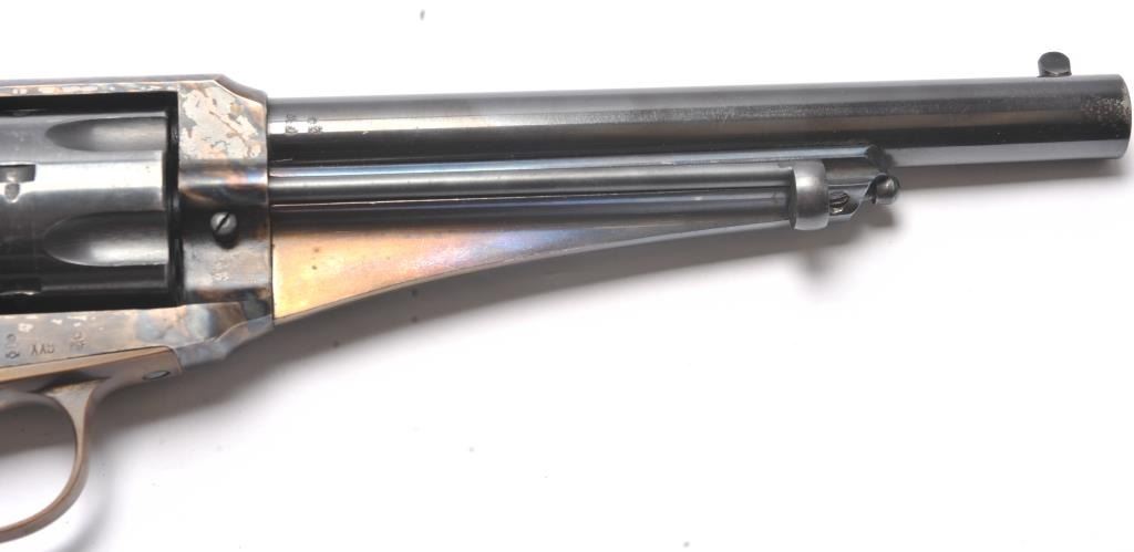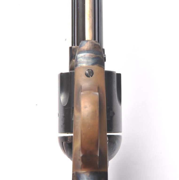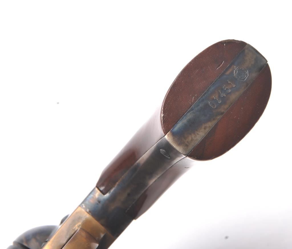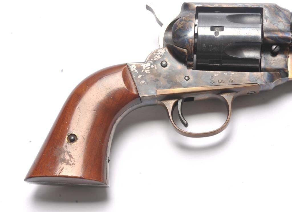 Uberti Model 1875 Remington SA Army revolver, .45 Colt caliber, Serial #01451. The pistol retains nearly all of the blue and case hardened finish with nice smooth wood grips showing little use. The bore is good, theaction is tight and the markings are crisp on this nice Italian reproduction. Est.: $300-$600. (Modern/PPT).