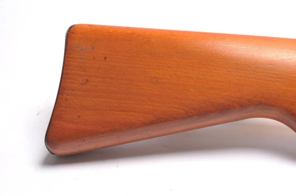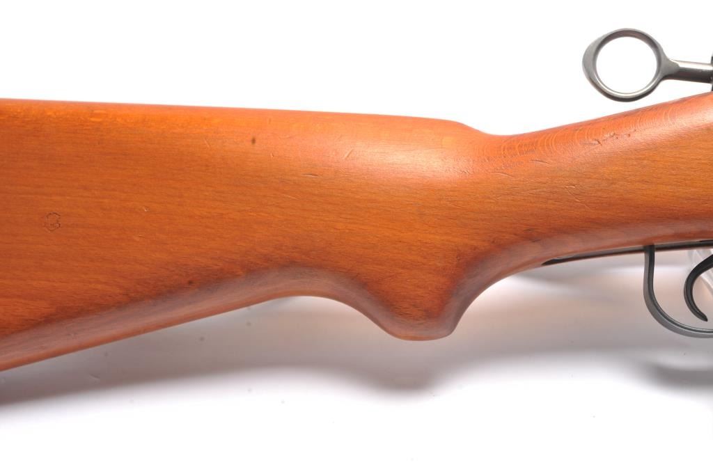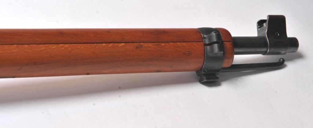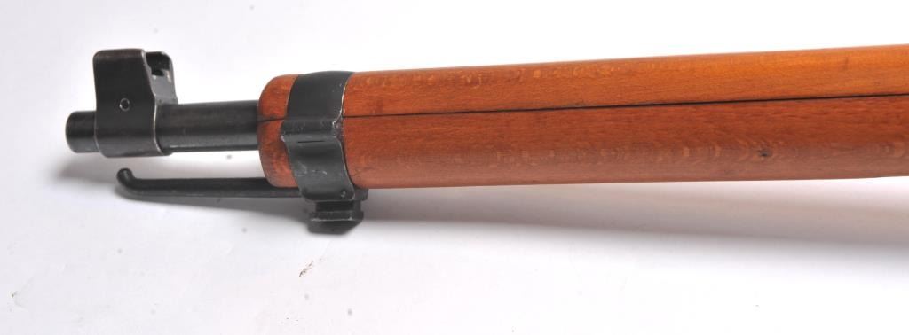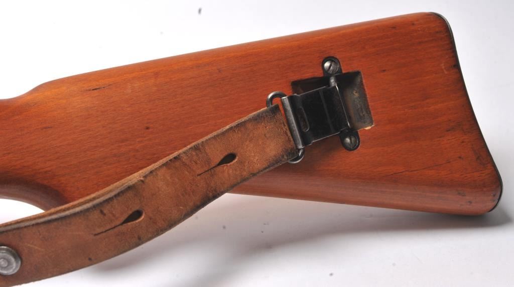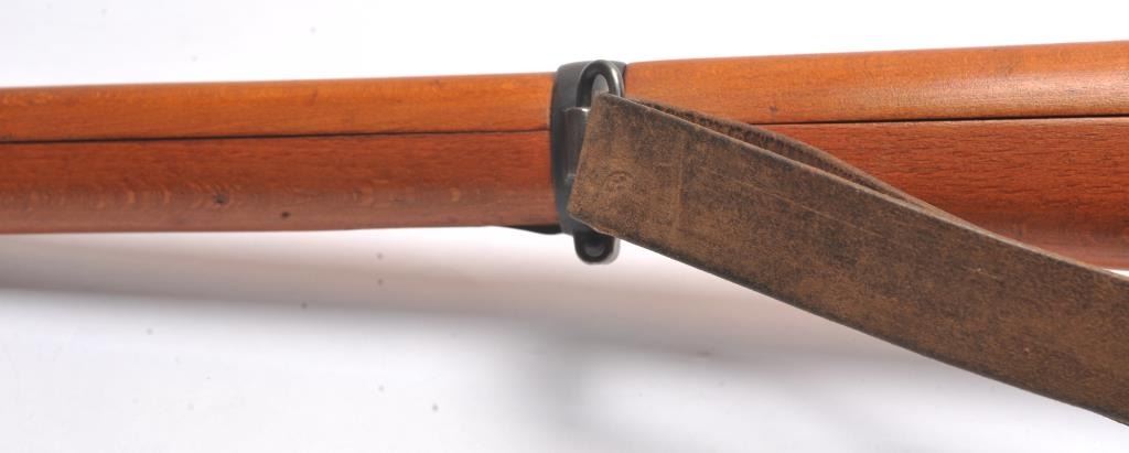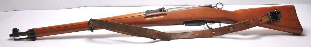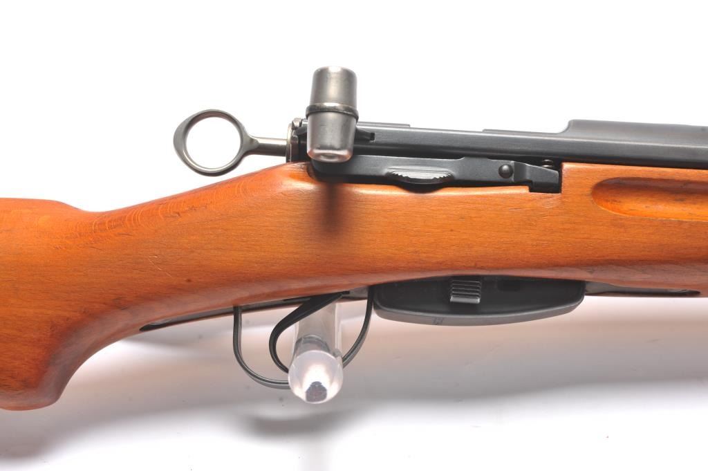 Schmidt-Rubin straight pull rifle, 7.5 x 55 caliber, Serial #980364. The rifle is in fine overall condition with a 26” barrel with a protected blade front and military tangent style rear sights. The rifle retains nearly all of the military finish with wear at the muzzle and storage marks. There are numerous proof and acceptance marks with all matching visible serial numbers. There is a crisp Swiss cross on the front ring. The smoothwood stock is in very good condition with integral sling mounts, swivels and a period leather sling. The bore is good, the action is crisp and the markings are sharp on this most acceptable Schmidt-Rubin. Est.:$300-$600. (C+R/PPT).