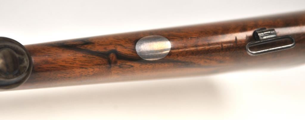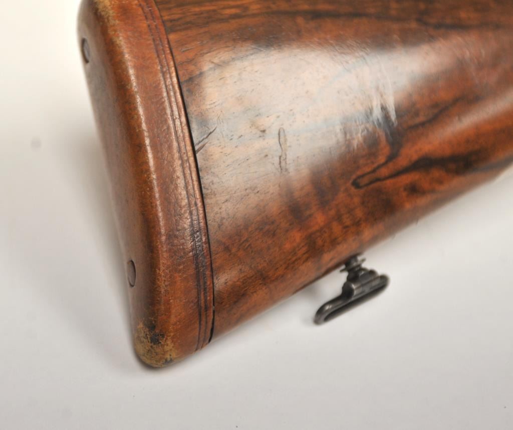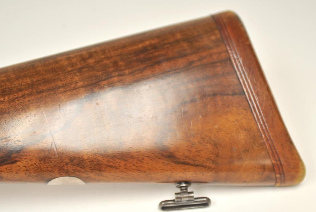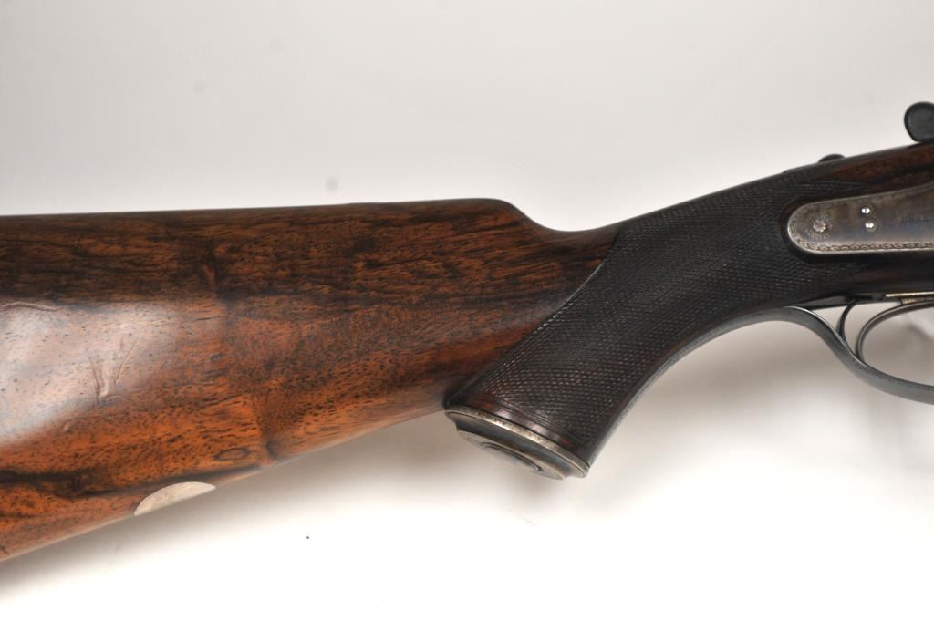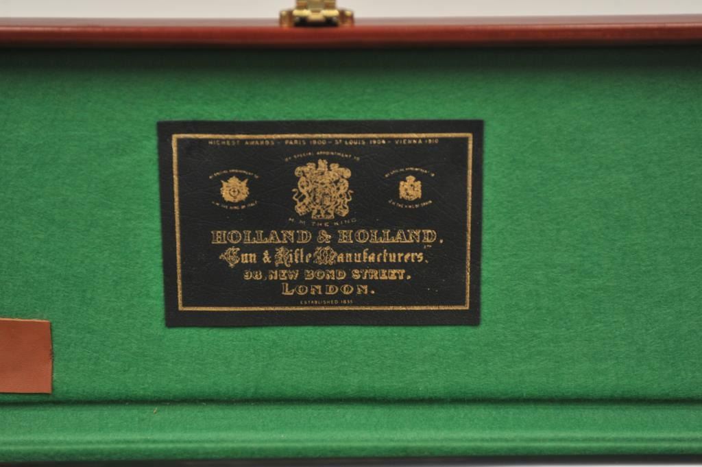 Holland & Holland Grade 2 Back Action Badminton double rifle, .500-.465 Nitro Express caliber, Serial #19122. The rifle has 26” barrels, weighing 10 pounds and 12 ounces with a fine Walnut stock with a 14 5/8” LOP, no cheek piece, trap in the pistol grip and recoil heel plate. The lot includes a factory letter indicating the rifle was manufactured on February 12, 1908 as a special order by Lady Brocklehurst. The intrepid Lady Brocklehurst’s life was the subject of a book and feature film. The Lady explored and traveled the Sahara desert of North Africa by automobile during a 1910 expedition, shortly after the rifle was produced.
