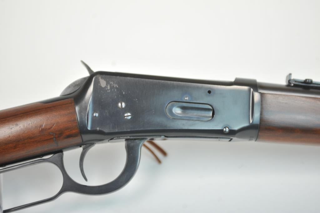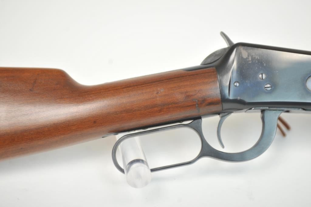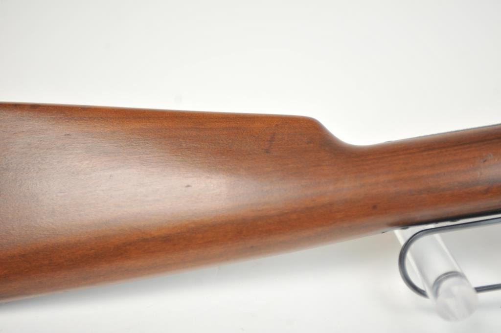 Winchester Model 1894 S.R.C. in .30-30 caliber, S/N 866097 in excellent to near mint condition formerly Robert “Bob” Settani collection made about 1919. This pristine ’94 retains 99+ original bright finish with asmall mark from ring and a few very small spots on the receiver. The original gun wood stock is also excellent with minimal aging and slight handling. A strong 9.8-9.9 S.R.C. that is over 100 years old from a top So.Cal. Collector who could never find a better ’94 S.R.C. in 40 years of collecting. (C&R) Est.: $3000-$6000