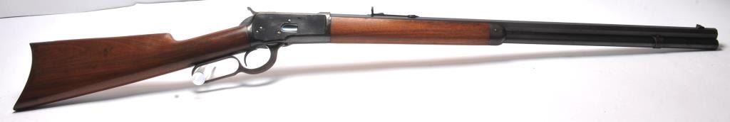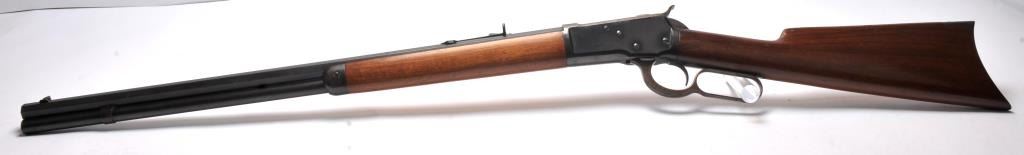 Winchester Model 1892 Lever Action Rifle in .38-40 caliber with a 26” octagon barrel, full mag, and rifle butt, S/N 32181 made 1894 with factory letter confirming all features. This rifle remains in fine originalcondition with 95%+ original blue on the barrel and tube that is toning and aging naturally with some minor areas of pinprick pitting just starting. Sharp edges and crisp markings. The frame shows 90%-95% with someloss and aging on the top edge. Considerable original colors on the lever and small parts. The wood is very good plus to fine with excellent wood to metal fit and most original varnish. A limited number of small dings inthe butt stock of the left side. The action is crisp and tight with fine and bright bore. A 9 on a 1-10 scale. Pre-98 Model 92’s with high finish are very scarce. (Antique) Est.: $5,000-$10,000