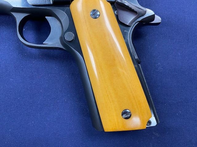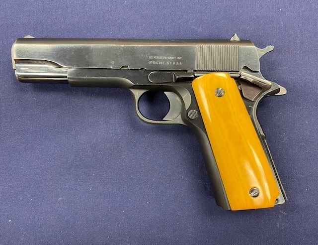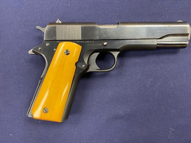 Colt Series 70 lower frame and Remington Rand upper with associated custom G.I. and Colt parts. Parts. Composite faux ivory grips. Nicely refinished and rebuilt by “MAC” Clough who was the sheriffs range officer in San Diego and pistol champion as his own combat weapon. Well used but very good condition. Approximately 90% older re-blue remaining. (Modern/PPT) Est.: $800-$1600