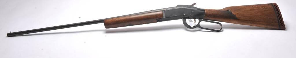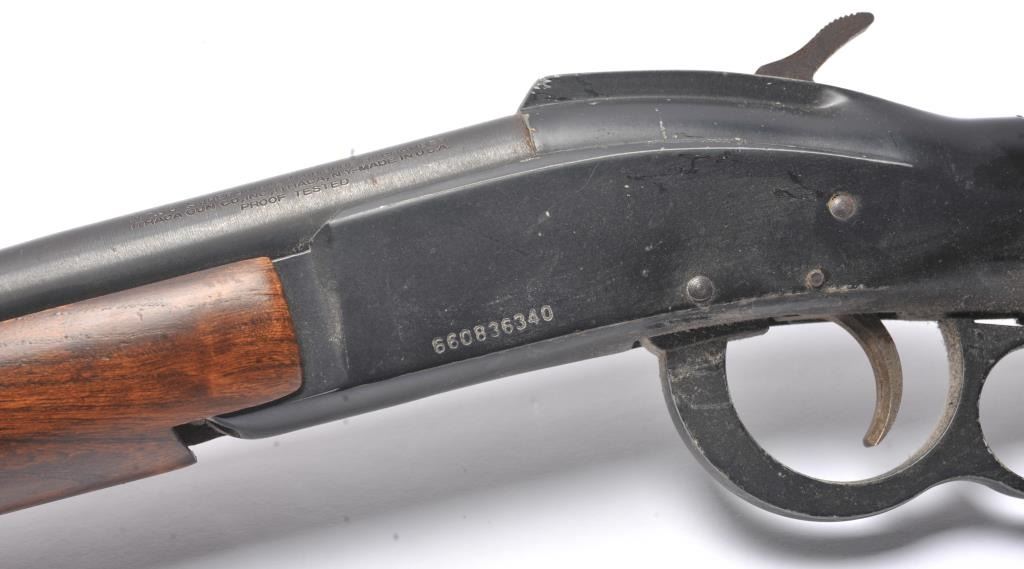 Ithaca M66 Super Single lever shotgun, .410 gauge, Serial #660836340. The shotgun is in fair overall condition with a 26” barrel. The metal surfaces have gone to dark patina with light surface erosion. The checkeredwood stock is in good condition with a ventilated rubber pad providing a 12 ½” LOP. The bore is dirty and may clean to fair and the action functions. Est.: $60-$120. (C+R/PPT).
