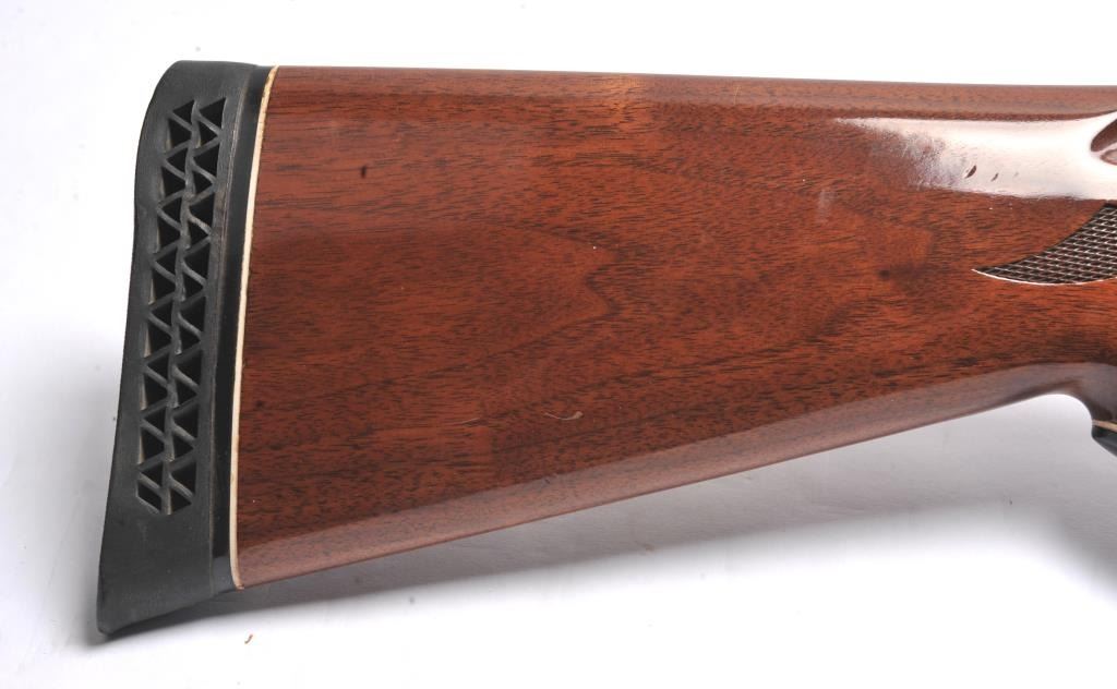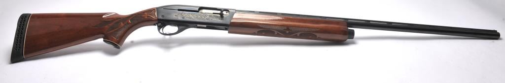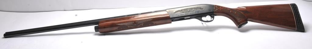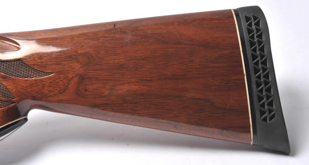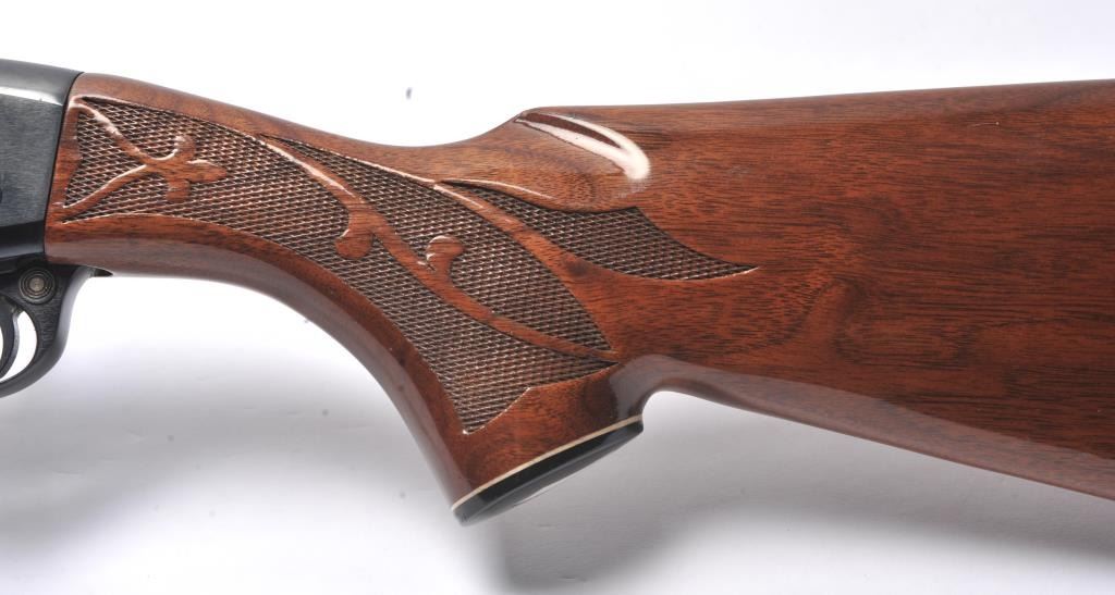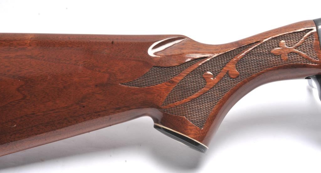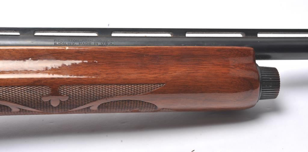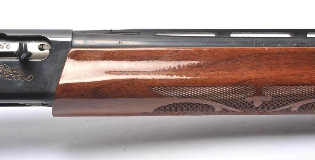 Remington Model 1100LT semi-automatic shotgun, 20 gauge, Serial #N076485U. The shotgun is in very good overall condition with a 28” barrel with a full-length ventilated rib. The shotgun retains asignificant amount of blue finish with mars and a light freckling of surface rust on the action. The receiver is lightly impress engraved and marked, “MAGNUM” on the right side of the receiver. The shotgun ischambered for 2 ¾” shells with a Modified choke. The checkered wood stock is in very good condition with a ventilated pad providing a 14 ¼” LOP. The bore is dirty and may clean to good. Est.: $300-$600.(Modern/PPT).