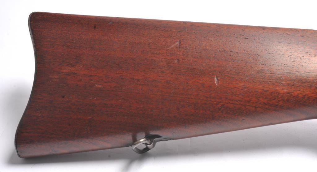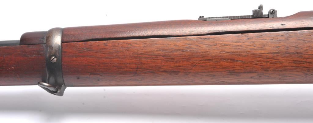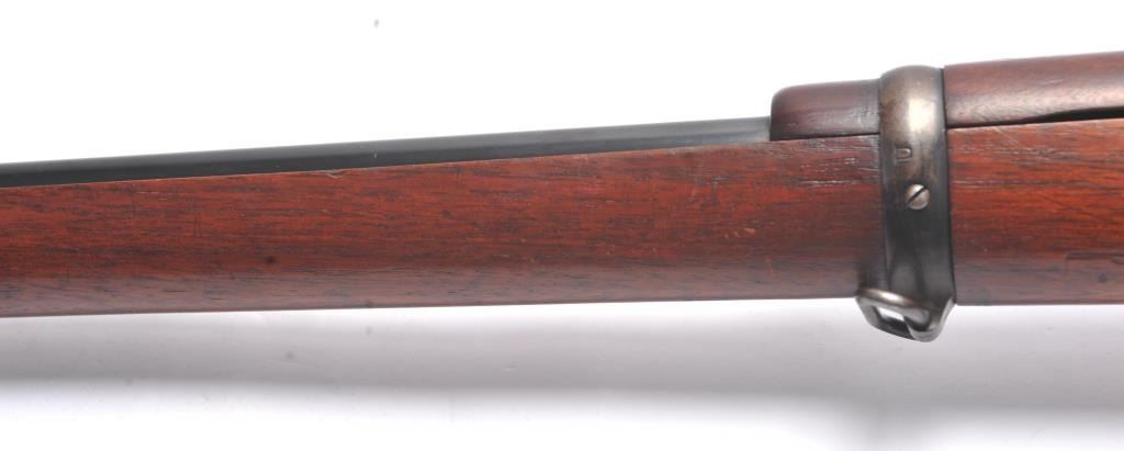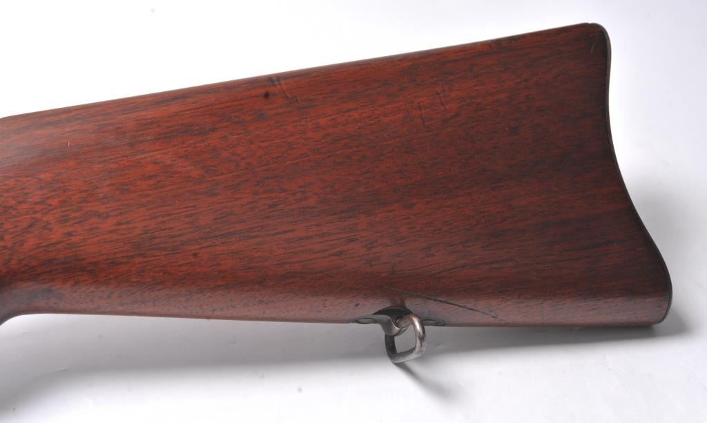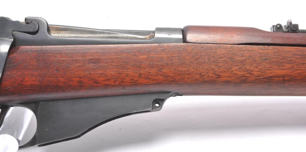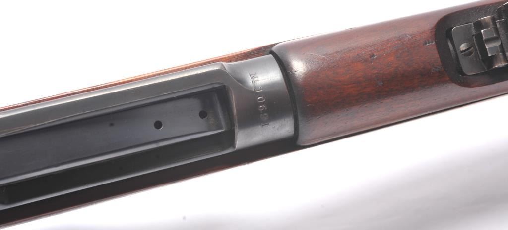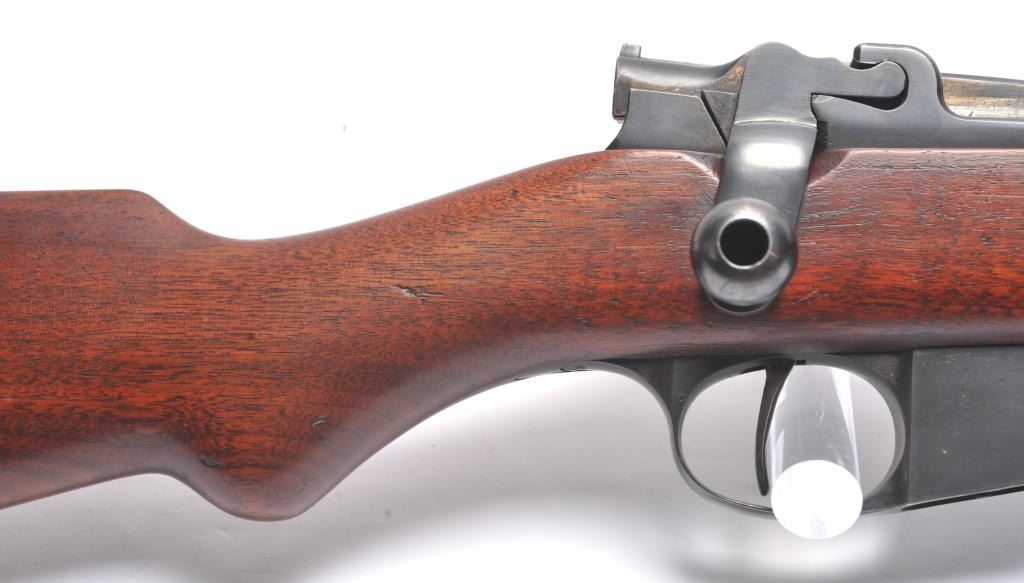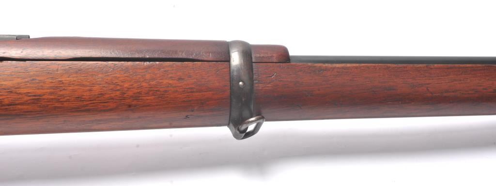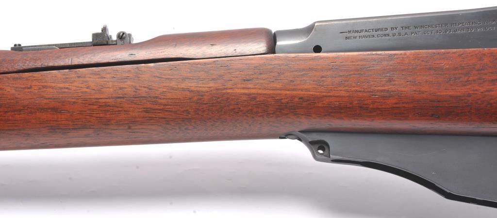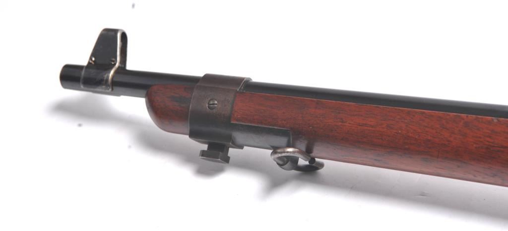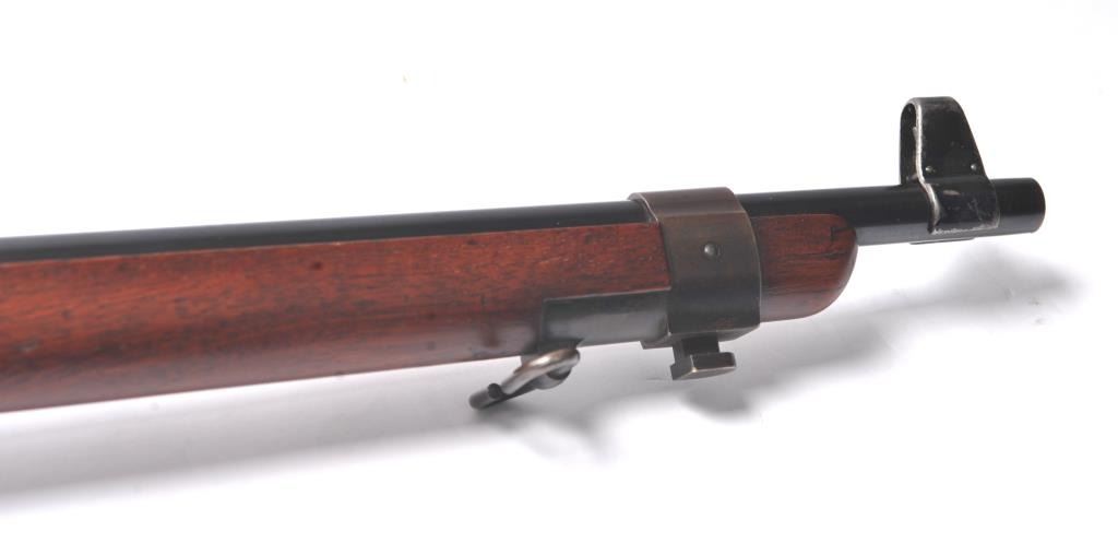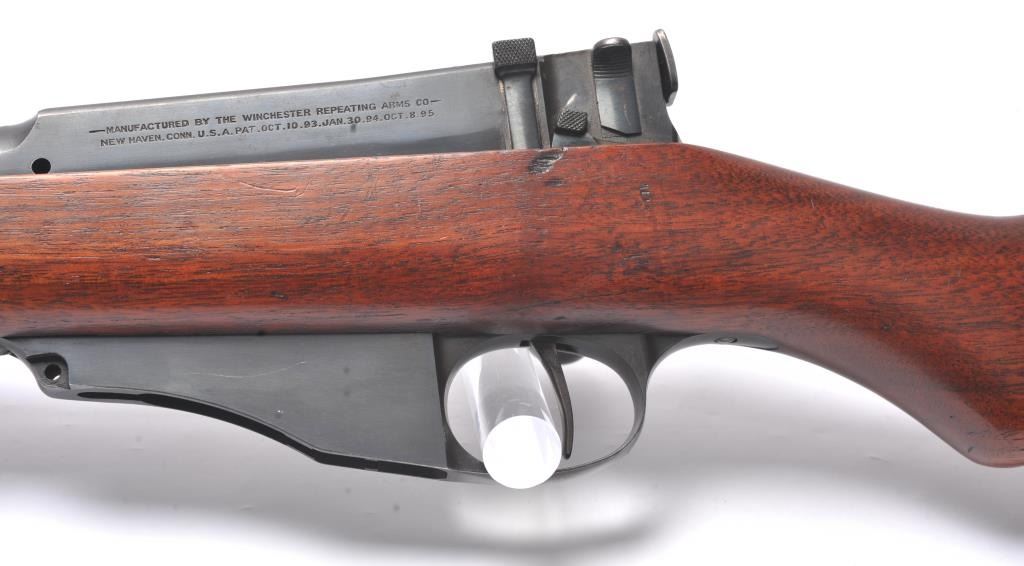Winchester-Lee straight pull commercial musket, 6mm caliber, 28” barrel with a hooded blade front and military ladder style rear sights, blue finish, sharp markings, Serial #10691. The gun is in fine overall condition showing the majority of its original finish to the metal surfaces, crisp action, near fine bore, sharp markings and overall very good to near fine wood. The stock includes sling swivels and a metal butt plate withtrap. A nice commercial Winchester-Lee. Est.: $1,500-$3,000. (C+R/PPT).