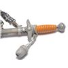 Outstanding WKC German WWII Luftwaffe Officer’s dagger with correct hanger and portepee. The bright blade on this dagger is in excellent condition with a crisp acid etched knight’s head, “WKC SOLINGEN” makermark. The double beveled steel blade shows no sharpening with a sharp tip. The original brown leather buffer pad remains intact. The scabbard is steel based with an even grey finish with pebbling, oak leafs and acorns. The scabbard is free of dents and the single screw at the throat is retained. The scabbard includes a correct, DRGM marked Luftwaffe double strap hanger with zinc alloy clips and buckles adorned with oak leavesand acorns. The Luftwaffe eagle has outstanding detail to the head, feathers, wings and a crisp swastika. The aluminum pommel and steel ferrule have a great look with sharp oak leaves and acorns. The burntorange Trylon grip has a good color with a tight wire wrap. The accompanying portepee is correct and in excellent condition. Acquired from the noted dealer, Thomas Wittman, this Luftwaffe dagger and hanger is