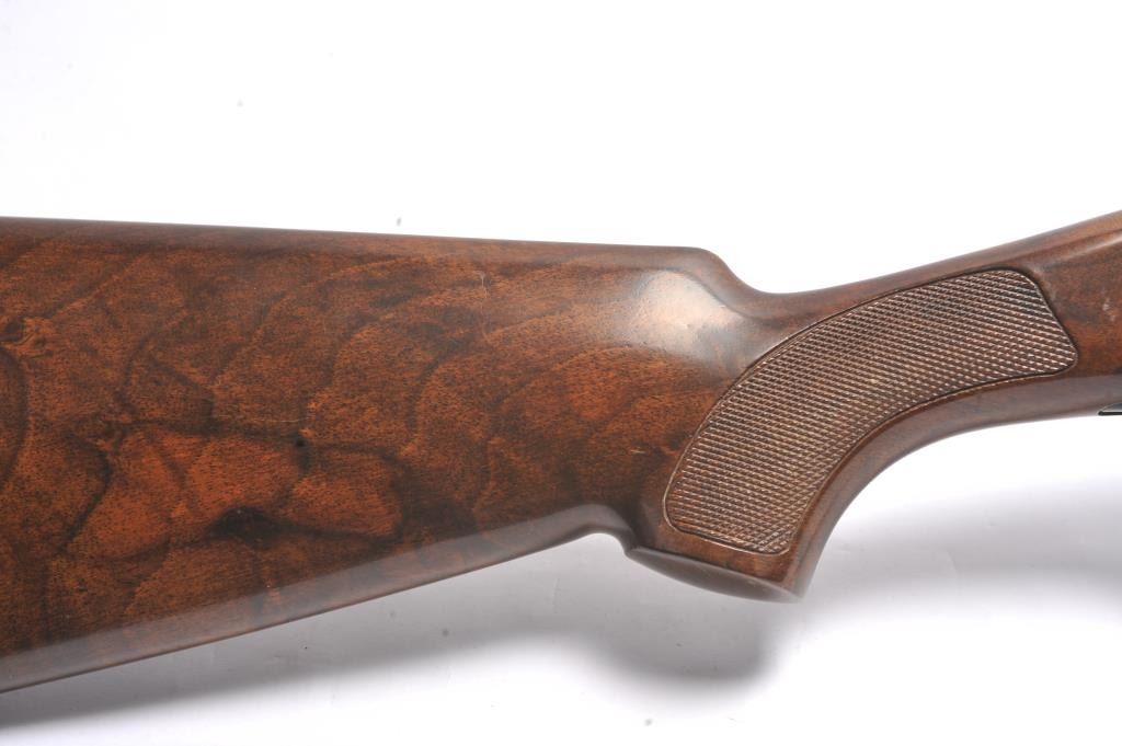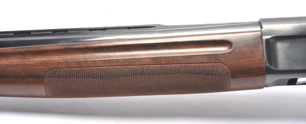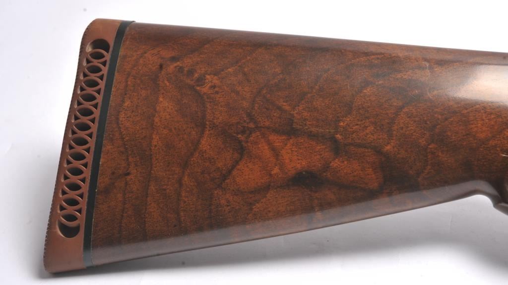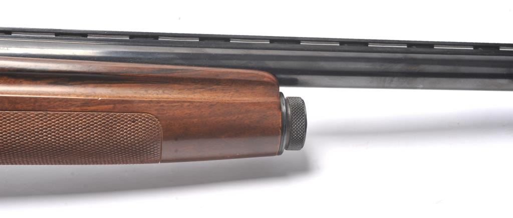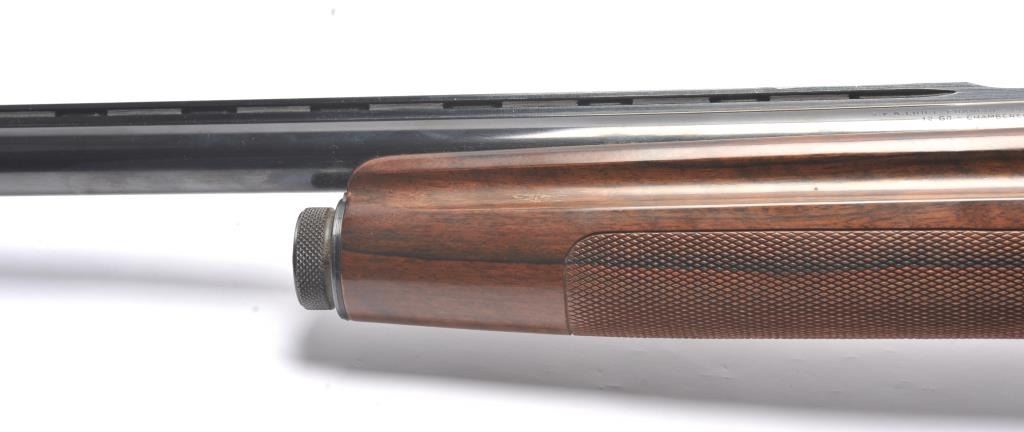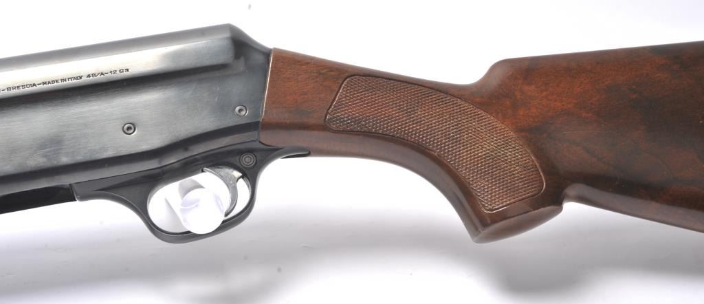 Franchi Model 48A semi-automatic shotgun, 12 gauge, Serial #152921. The shotgun is in fine overall condition with a 32” barrel with a full-length ventilated rib. The shotgun retains approximately 95-96% of the bluefinish with light handling marks. The shotgun is chambered for 3” shells and has a Full choke. The finely checkered Walnut stock is in very good condition with sharp checkering, nice figure and a ventilatedrubber recoil pad providing a 14 ¼” LOP. The bore is good and the action is crisp on this early Luigi Franchi. extra spring included Est.: $600-$1,200. (Modern/PPT).