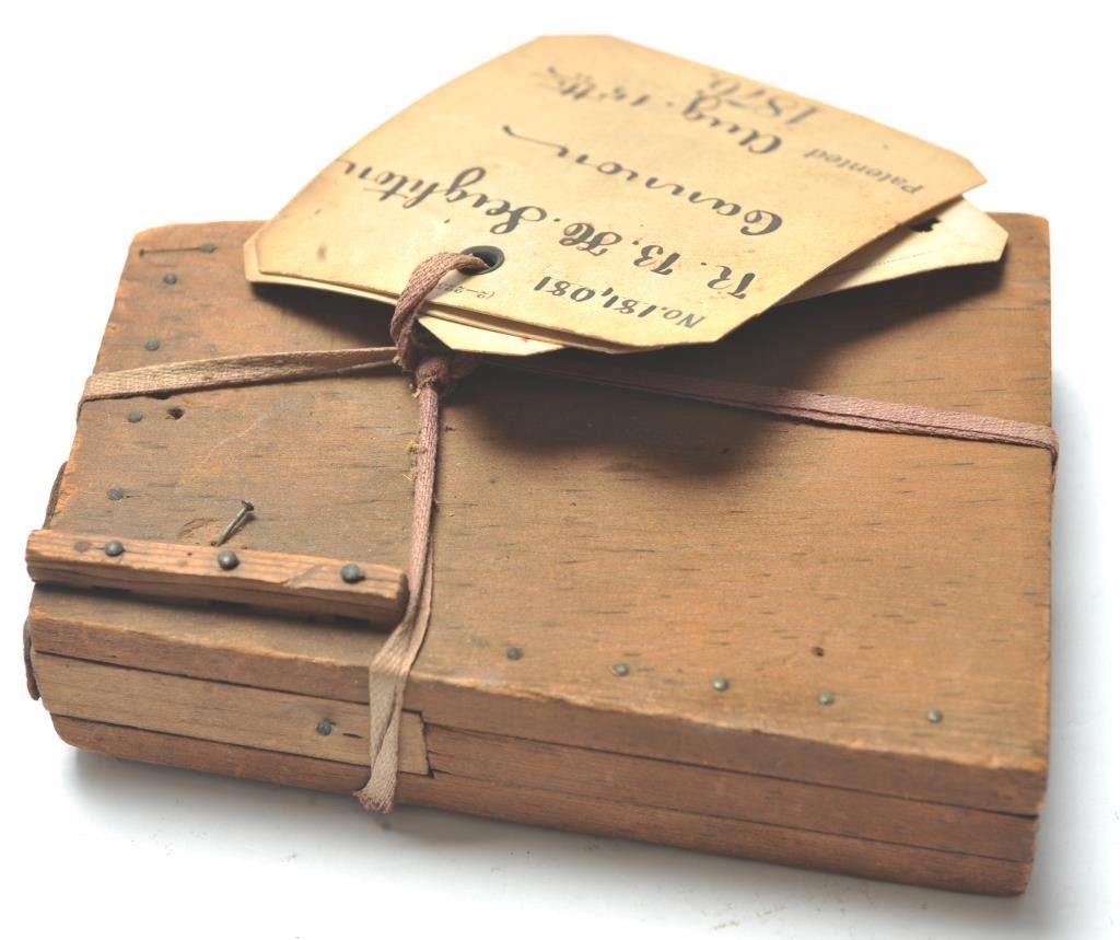 Wood Patent Model with patent office tag “# 181081 RBH Leighton Cannon Pat Aug 15 1876”. Measures 5” x 3 ½”. Mr. & Mrs. O. Rundle Gilbert’s U.S. Patent Model Collection. Est.: $300-$600