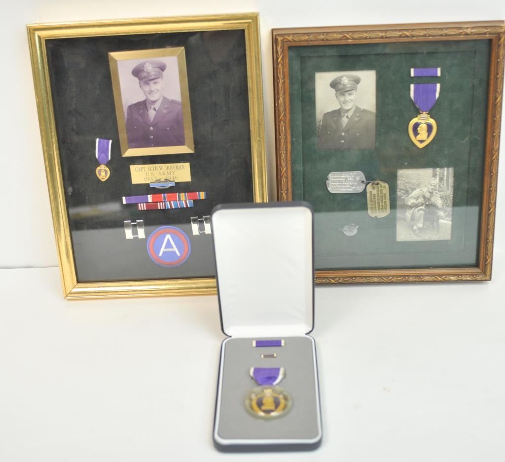 Excellent displays of Medals, Artifacts, Dog Tags and Effemera belonging to Capt. Seth Hoffman U.S. Army who received the Bronze Star and 2 Purple Hearts. From the Museum of World Wars Ron Lane Collection. ImpressiveDisplays. Est:$400-800