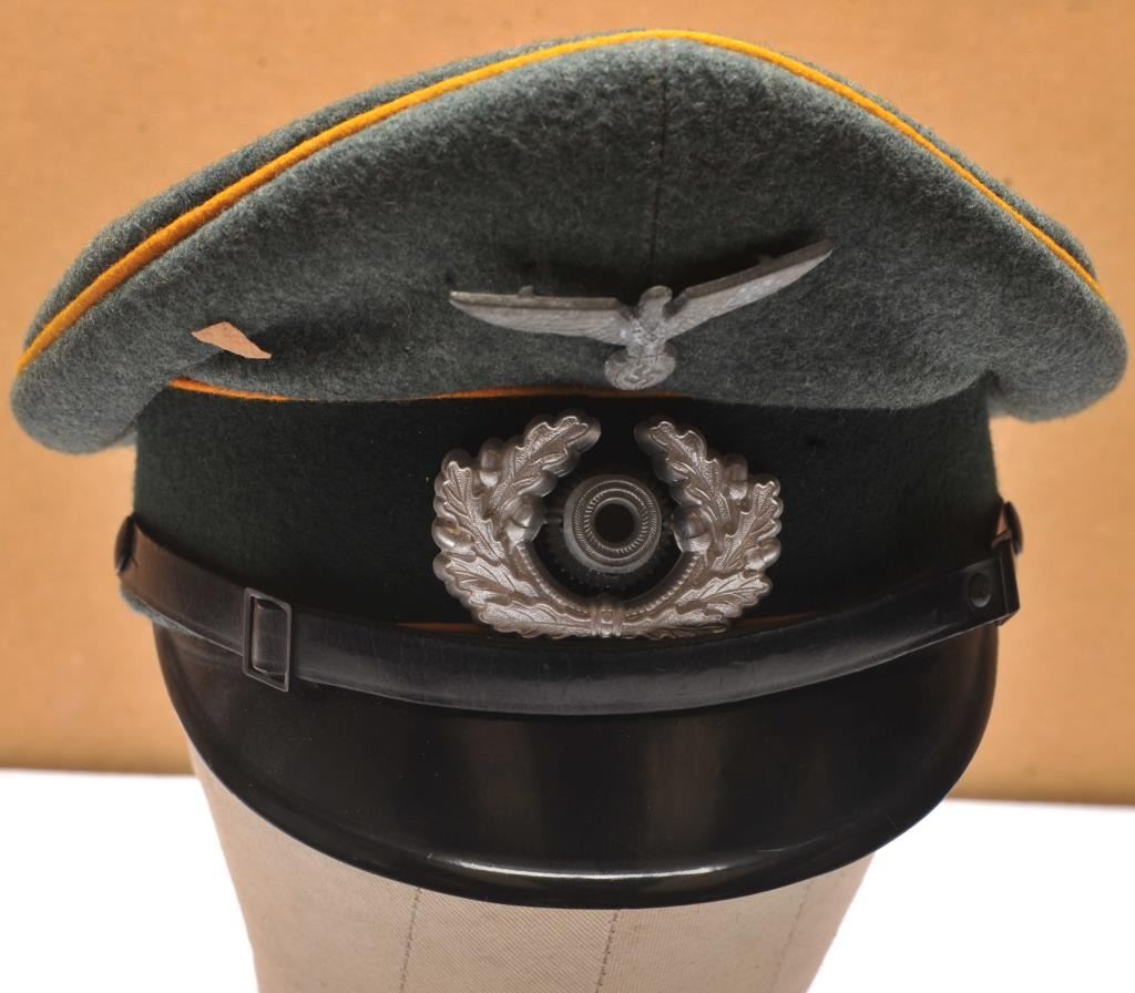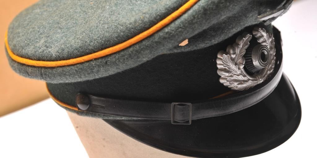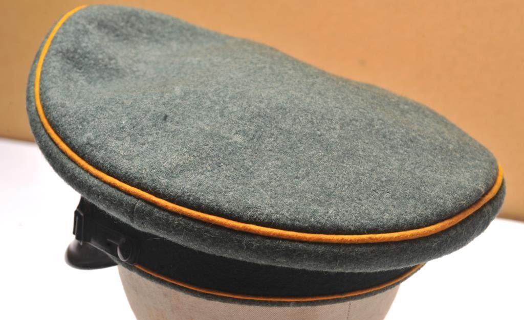 German Nazi Era Wehrmacht Cap, enlisted with yellow piping. Very good with minor, normal aging and sweat stain to band and interior. Est:$250-500