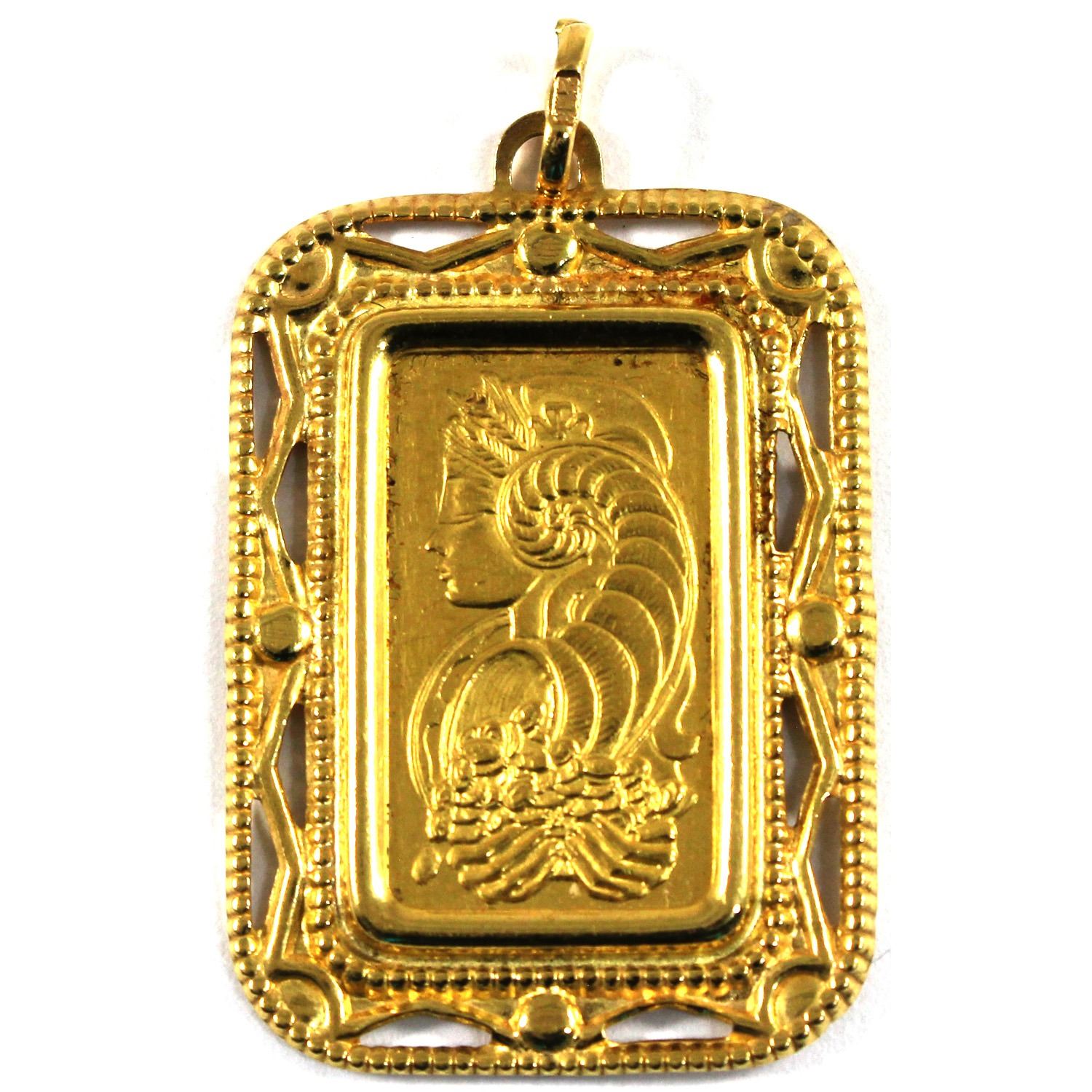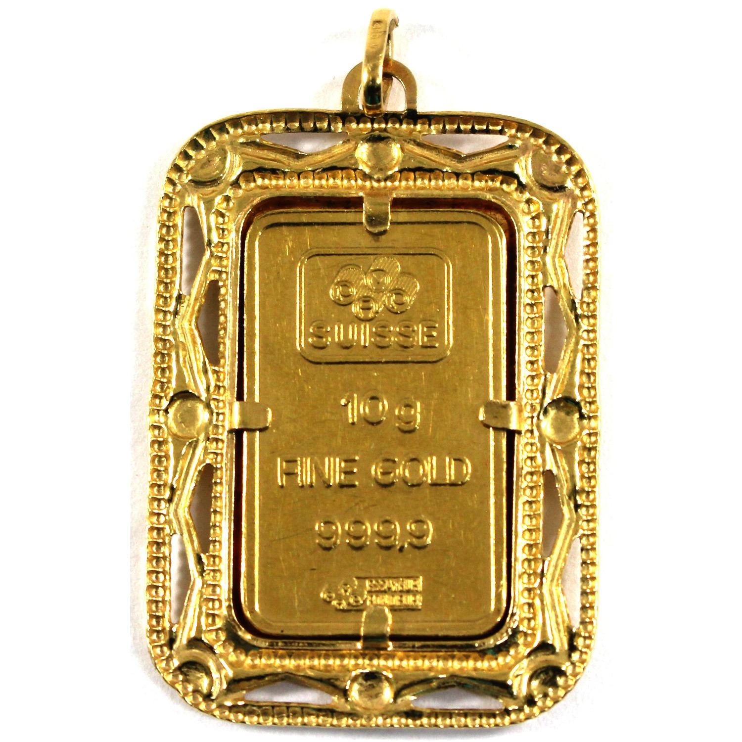 21K Gold Bezel Containing a 10 Gram Pamp Suisse .9999 Fine Gold Bar. You will receive 10 grams of 24K gold and 4.7 grams of 21K gold. (TAX Exempt)