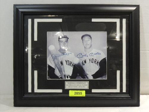 FRAMED & MATTED 21X17 BASEBALL PHOTO 2 AUTOGRAPHS MICKEY MANTLE & JOE DIMAGGIO. COA FROM MFP II. AS SHOWN. VIEW PICTURE FOR DETAIL.