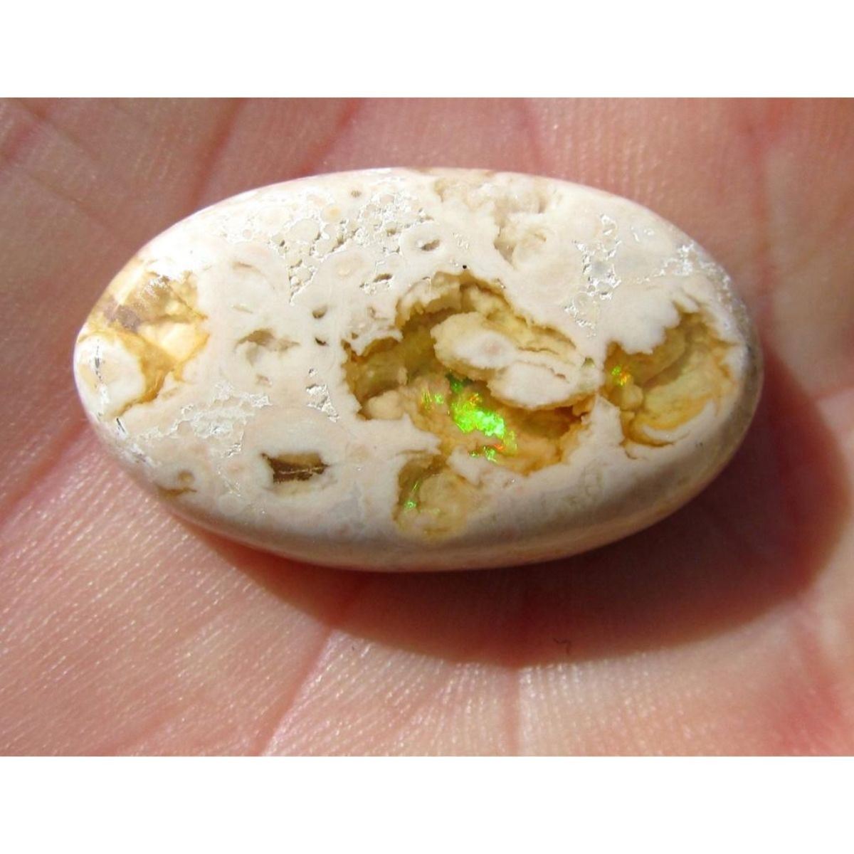 21ct Matrix Opal from Magdelena Mexico. Appx. size: 30 x 18 mm . 7 mm thick. Green & red flashes with good polish, opal on rhyolite matrix. Â