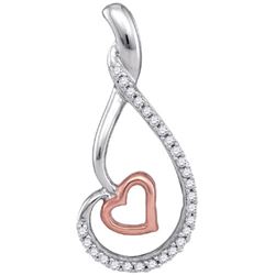 10kt White Gold Womens Round Diamond Heart Rose-tone Lo **|**|** 10kt White Gold Womens Round Diamond Heart Rose-tone Lovebirds Pendant Necklace 1/10