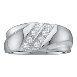 10k White Gold Round Channel-set Natural Diamond Mens C