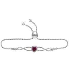 Sterling Silver Womens Round Lab-Created Ruby Diamond B **|**|** Sterling Silver Womens Round Lab-Created Ruby Diamond Bolo Fashion Bracelet 1/2 Cttw