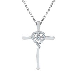 10kt White Gold Womens Round Diamond Solitaire Cross He **|**|** 10kt White Gold Womens Round Diamond Solitaire Cross Heart Religious Pendant 1/10 Ctt