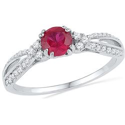 10kt White Gold Womens Round Lab-Created Ruby Heart Lov