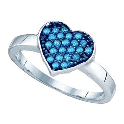 10KT White Gold 0.30CTW BLUE DIAMOND HEART RING