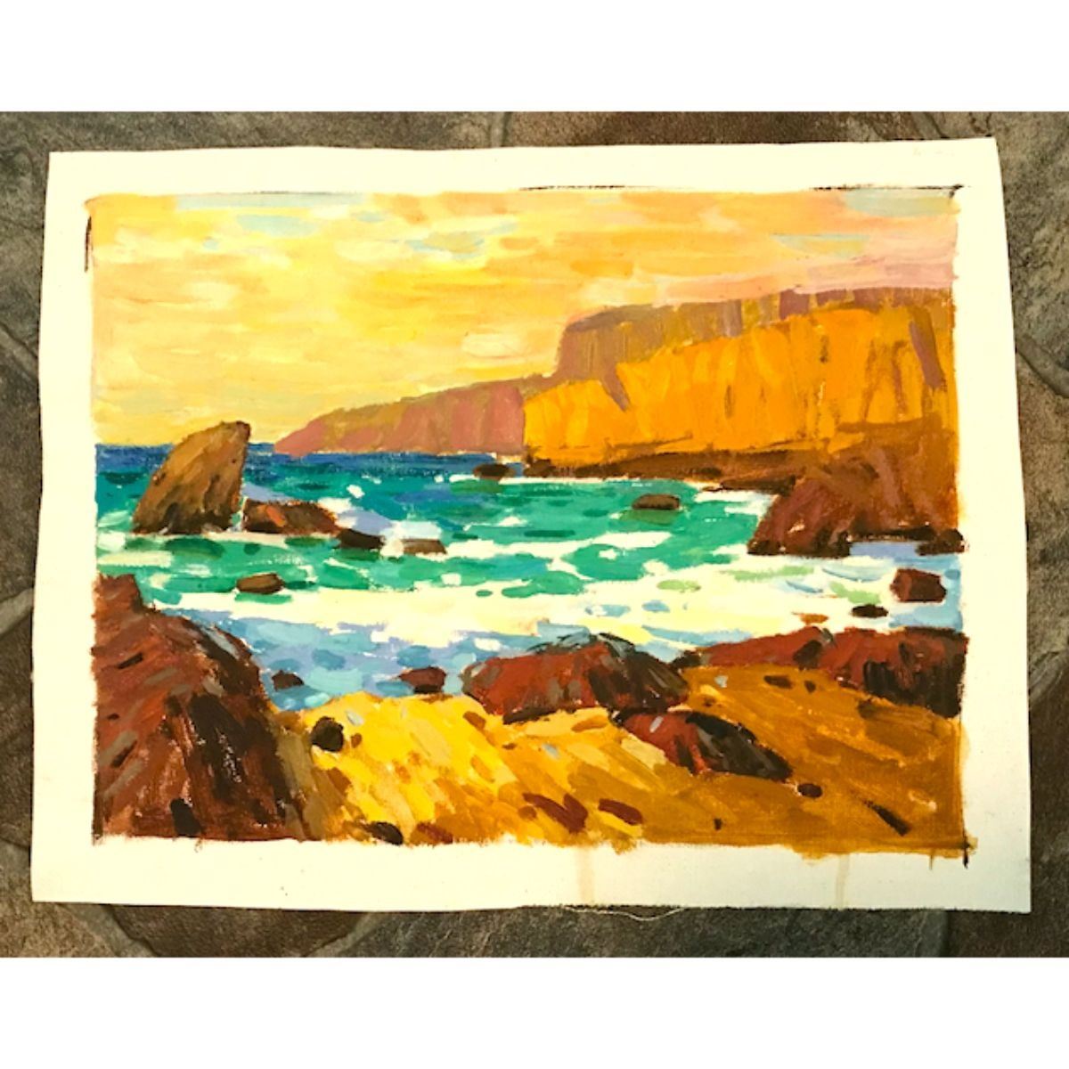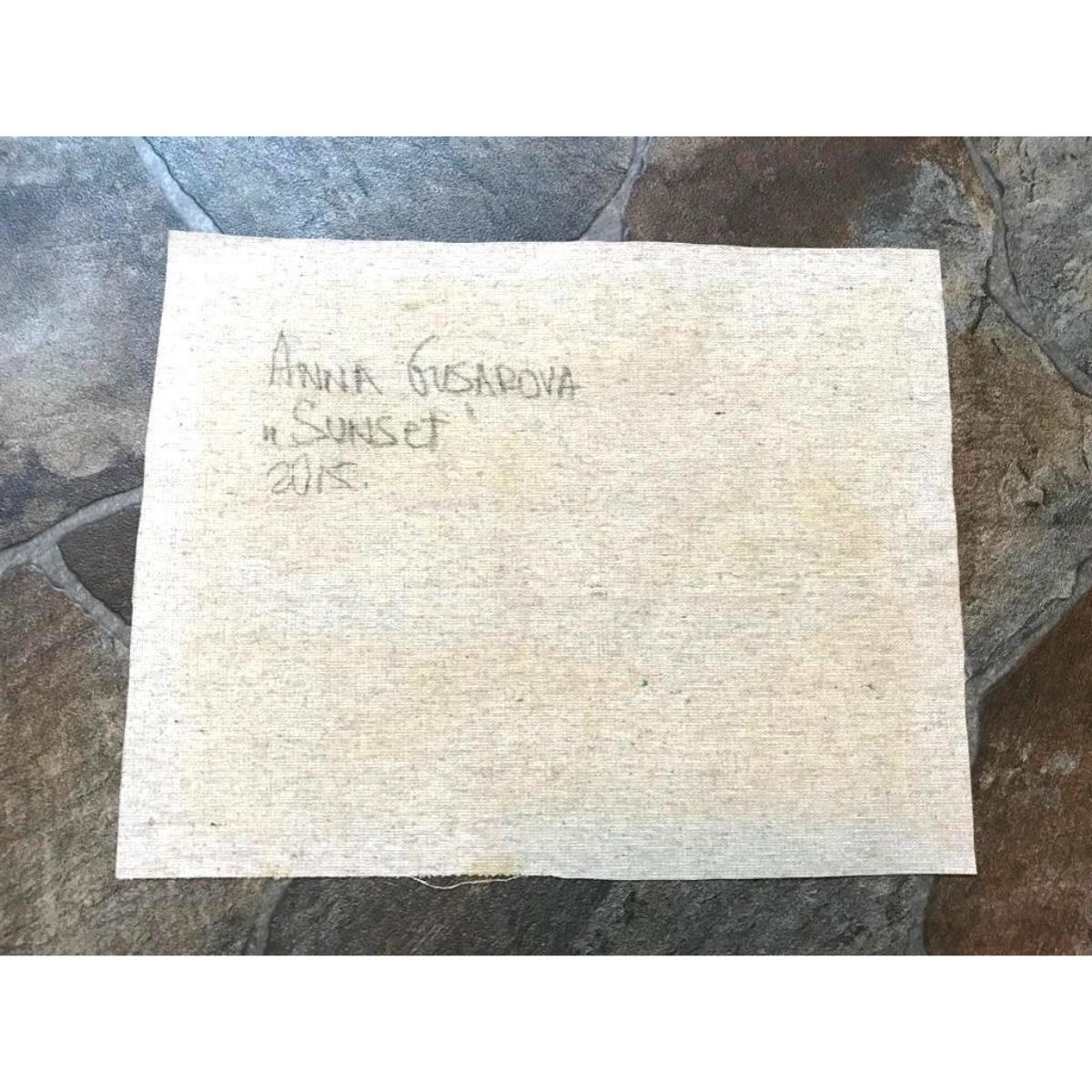 21st Century Impressionist oil painting on unstretched canvas, Sunset, signed by the artist in 2015, Anna Gusarova, on reverse. 9" X 12",Â